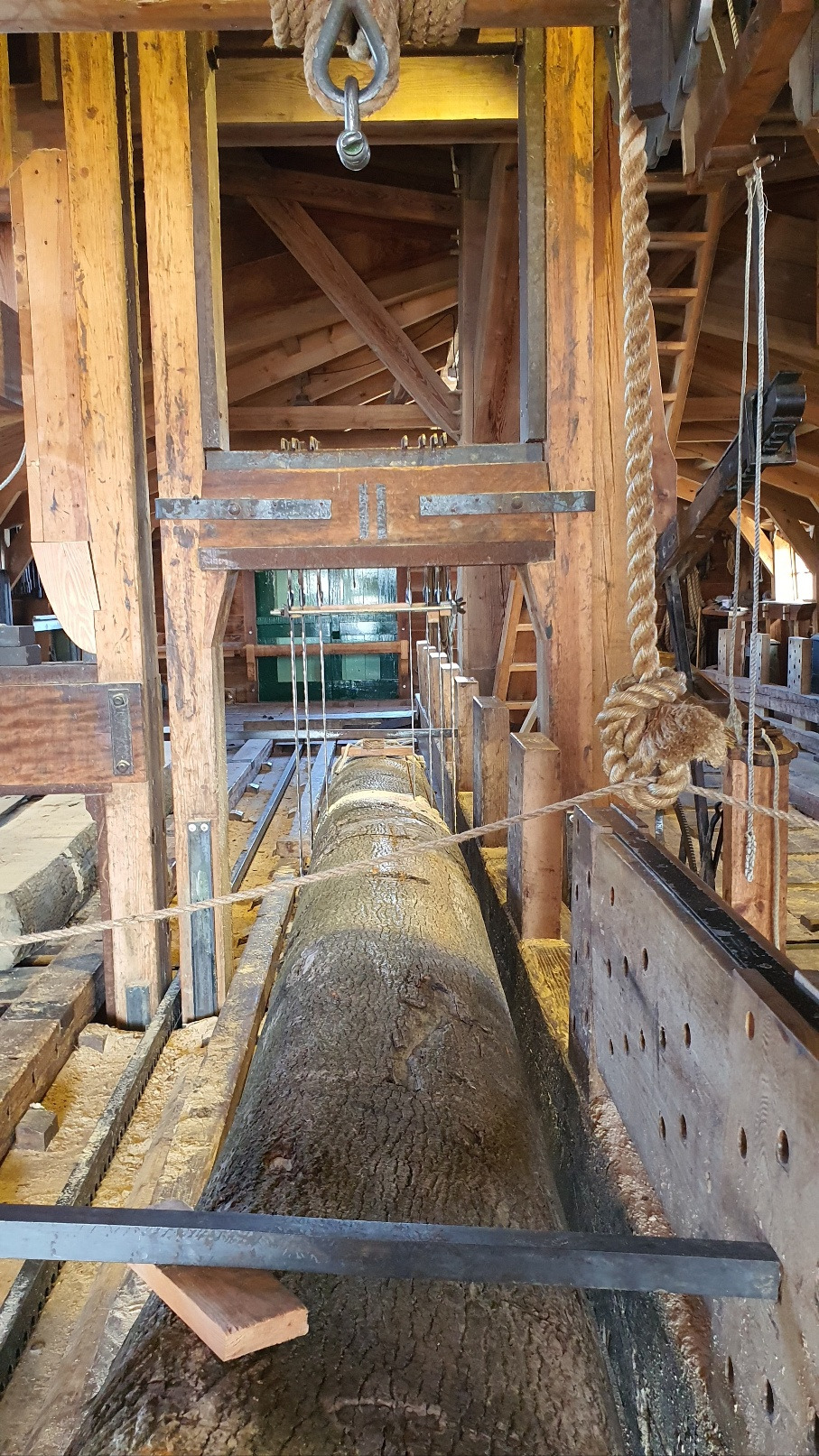 - 날개 회전의 힘으로 톱날이 움직여 통나무를 잘랐다 -