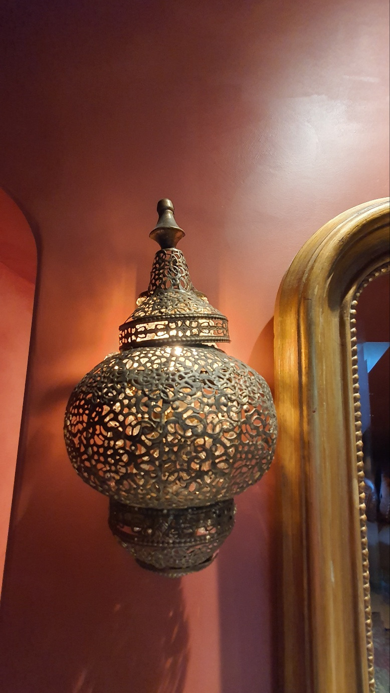 돌조각 붙인 벽과 그림과 조명의 조화가 예술의 극치를 보여준다.
