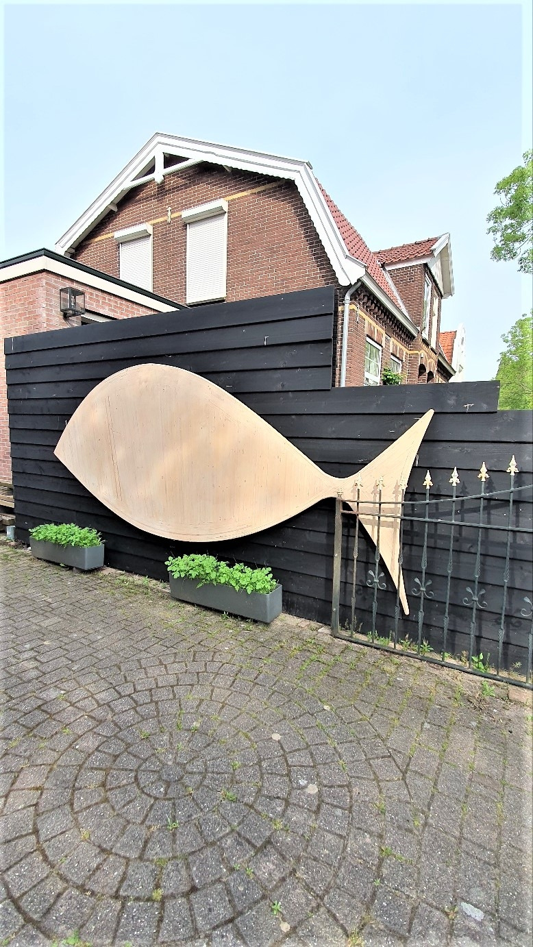 지날 때마다 검정 나무 담장의 물고기가 예뻤다.