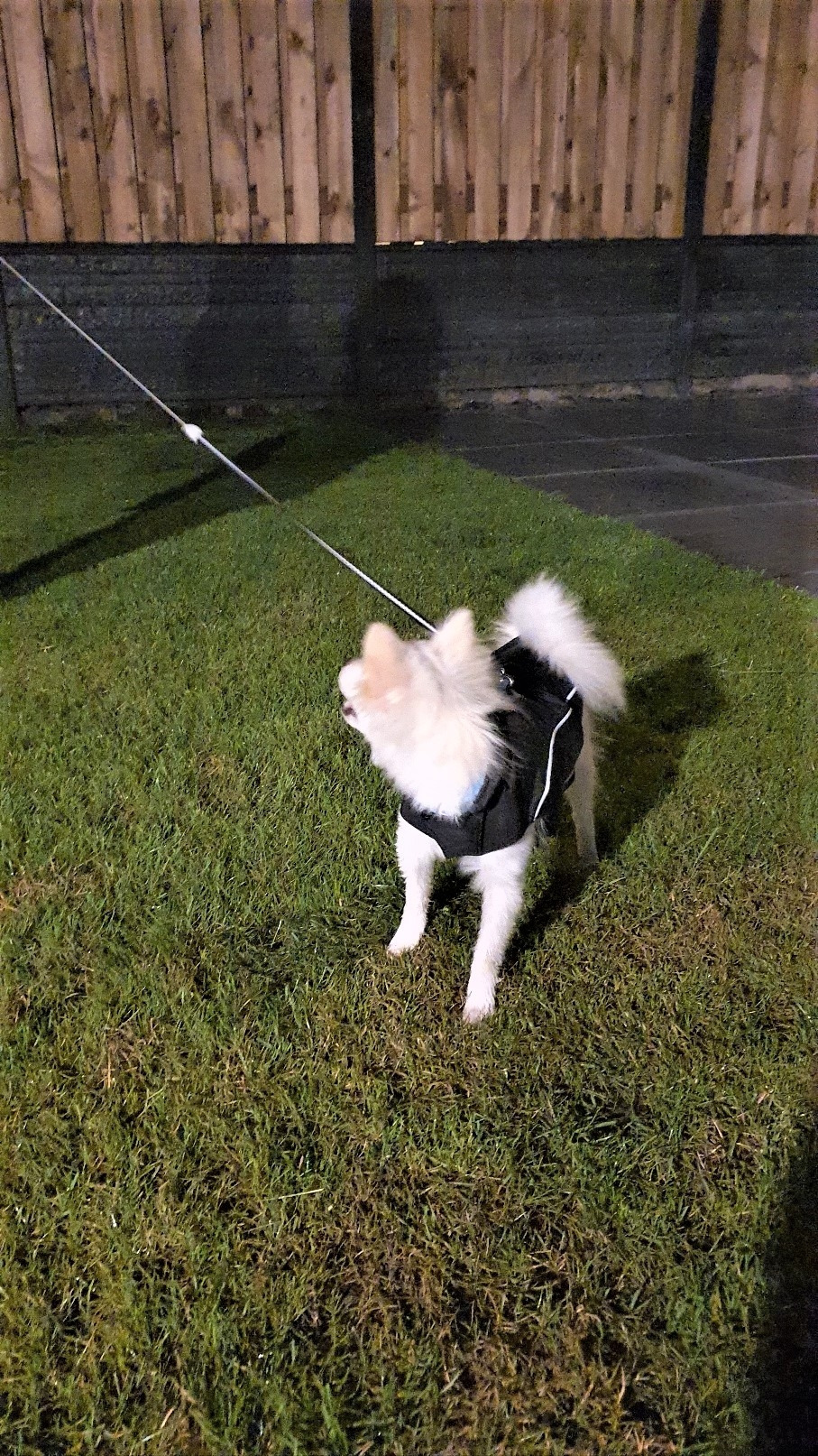 집 근처에서 강아지를 산책시키고 돌아오는 작은 손녀를 만났다.
