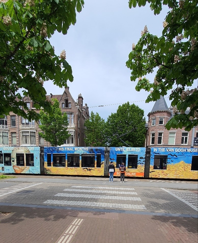 고흐 그림이 그려진 전철이 지나간다.