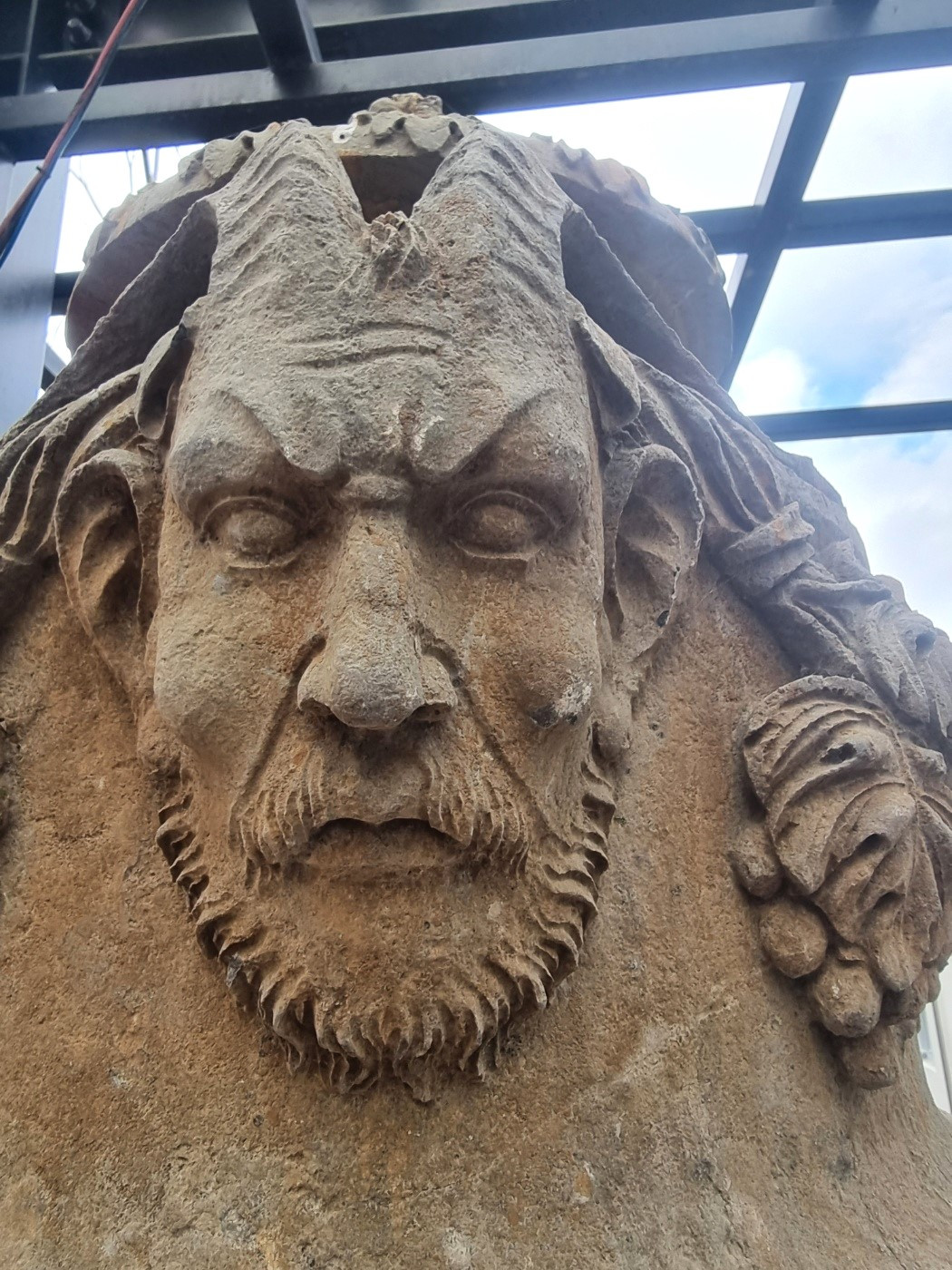 양쪽에 세워진 조각품도 어마어마하게 기다란 나무에 작품을 새겼다.