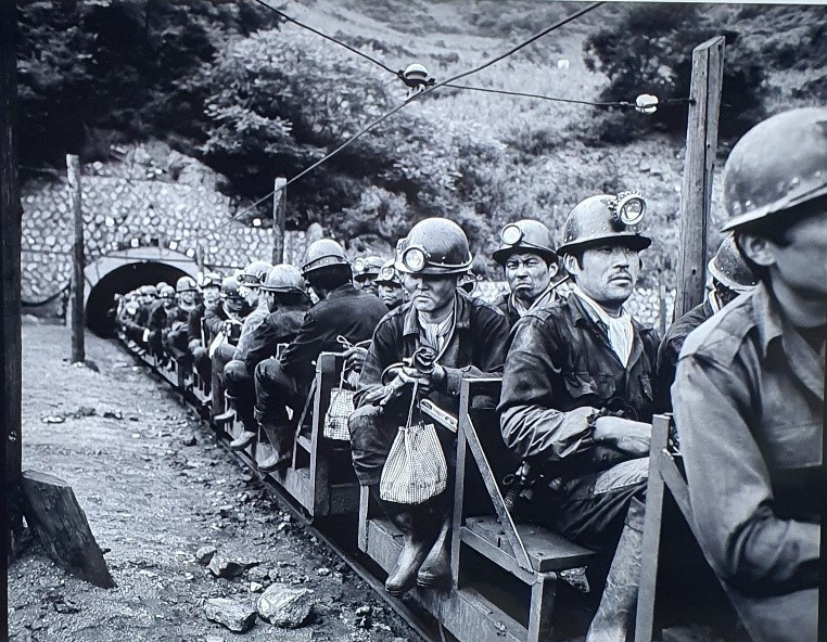석탄을 캐다 씻지도 못하고 식사하는 두 광부