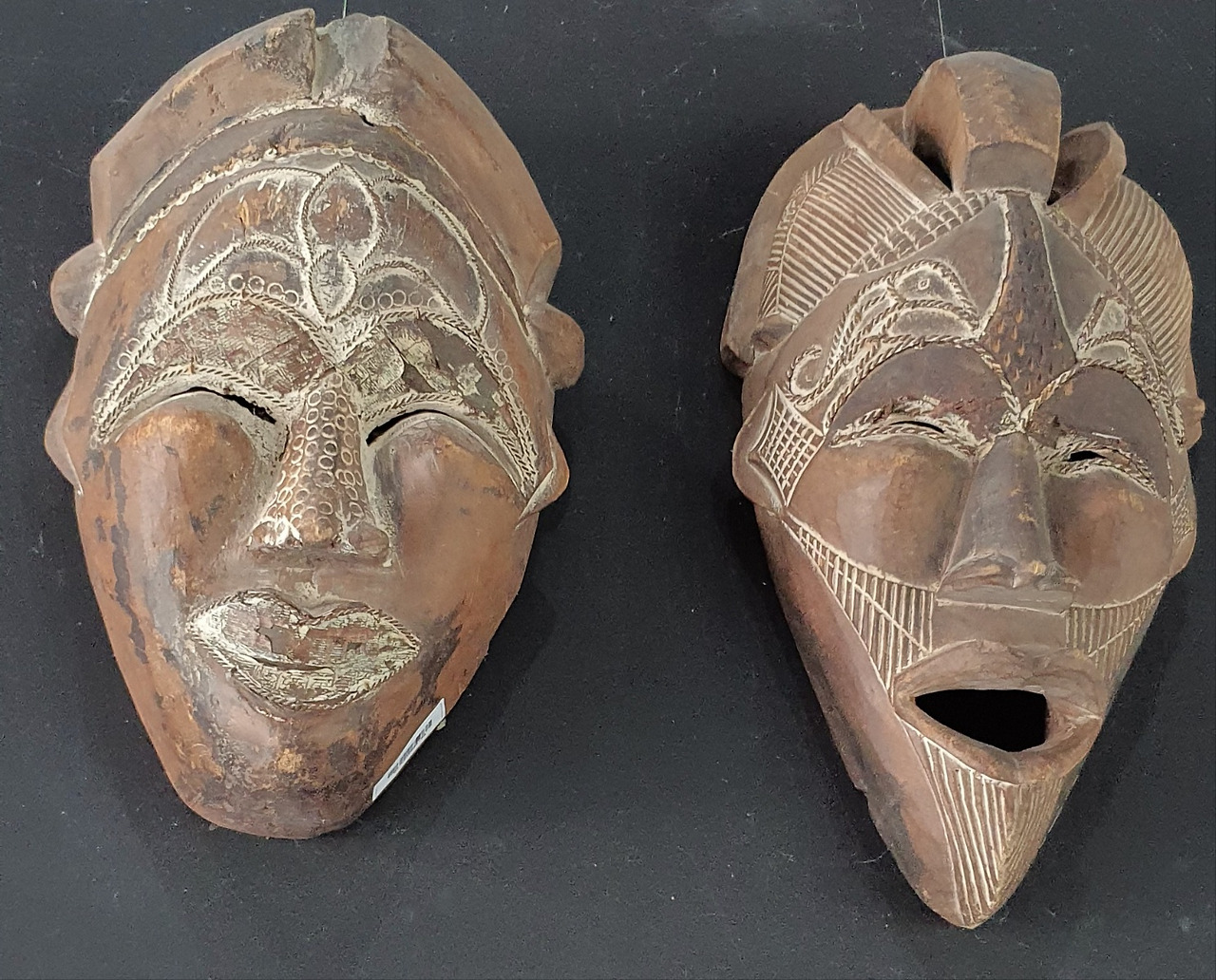 아래 오른쪽 두 개는 우리나라 탈과 아주 조금 닮았다.