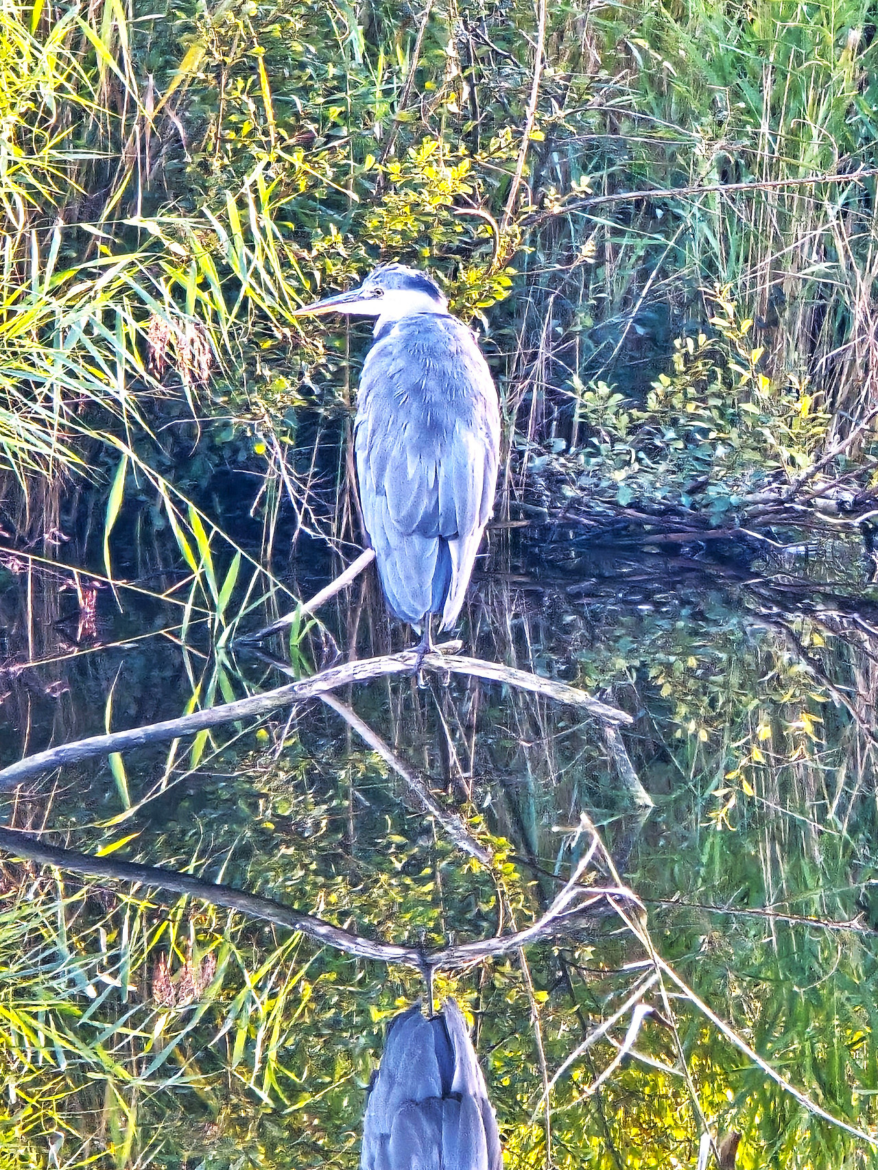 꽁지 일부가 물에 비쳐 외로워 보이지 않는다.