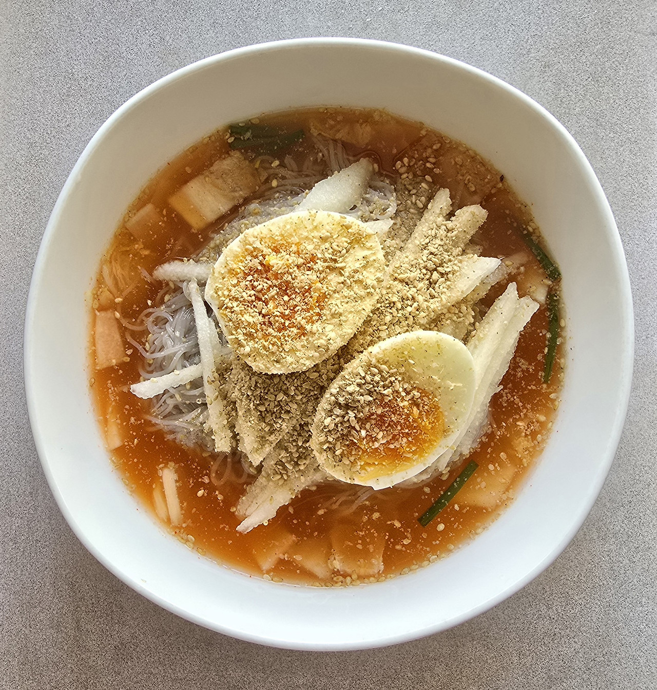나박김치는 구운 고구마에 곁들여 다 퍼먹고 조금 남았는데 설 쇤 지 이십일이 되자 알맞게 익어 사이다처럼 톡톡 쏜다. 오늘 점심은 조카며느리표 나박김치 국물로 냉면을 만들고 참깨를 듬뿍 뿌렸다. 맛이 기막히게 좋았다.