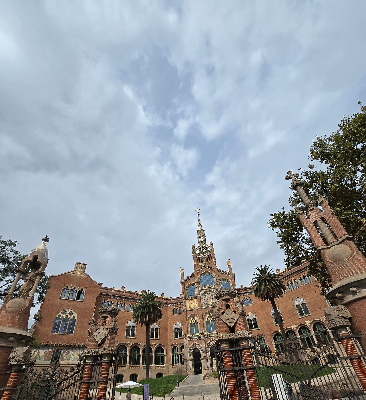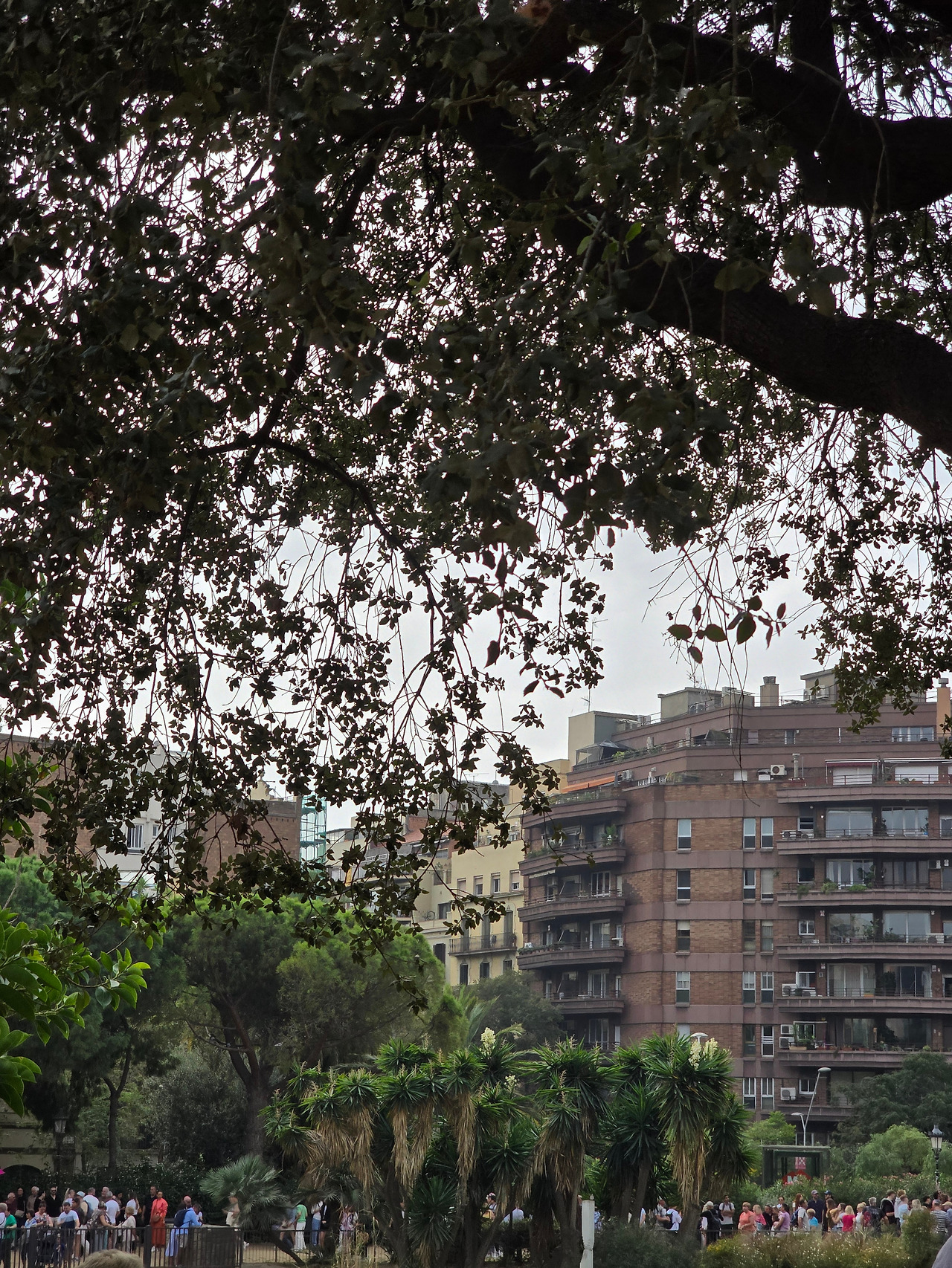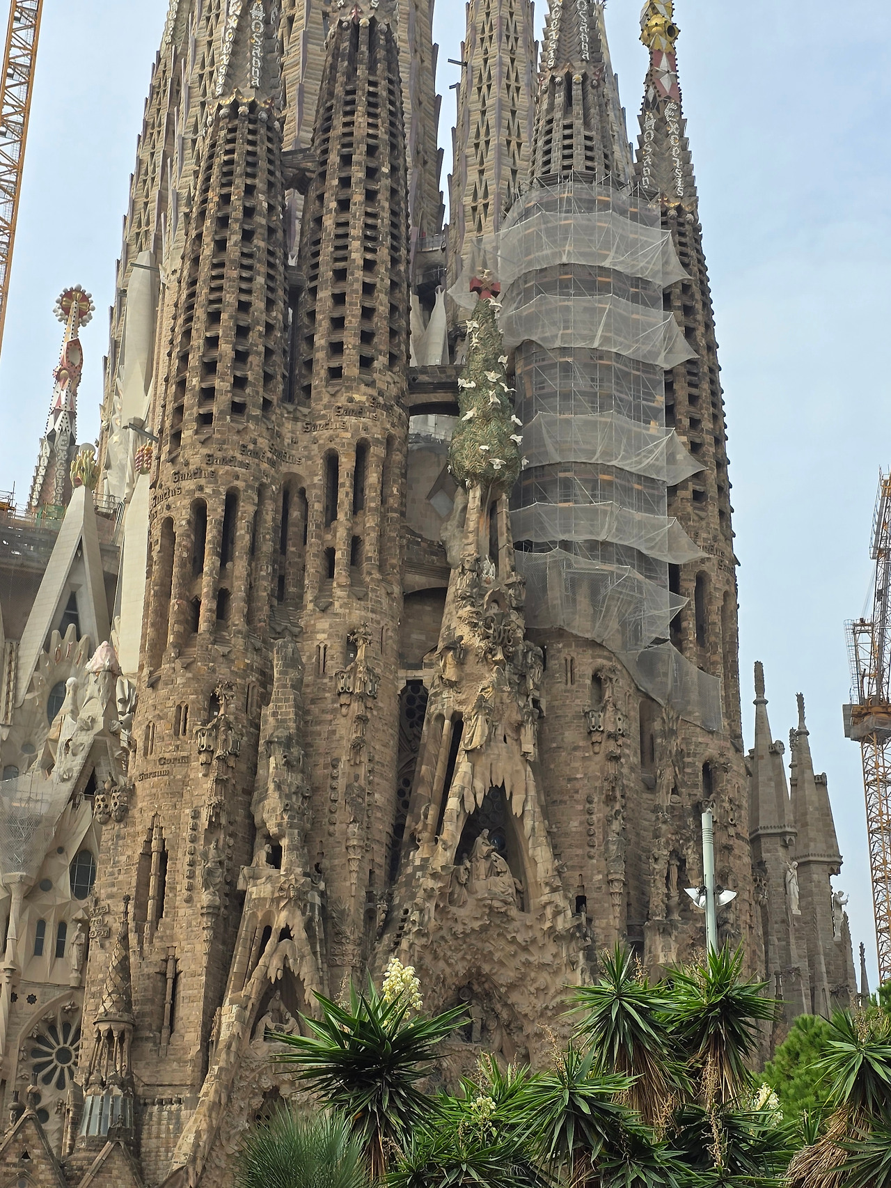 열대 식물과 어우러진 사그라다 파밀리아 대성당 뒷모습