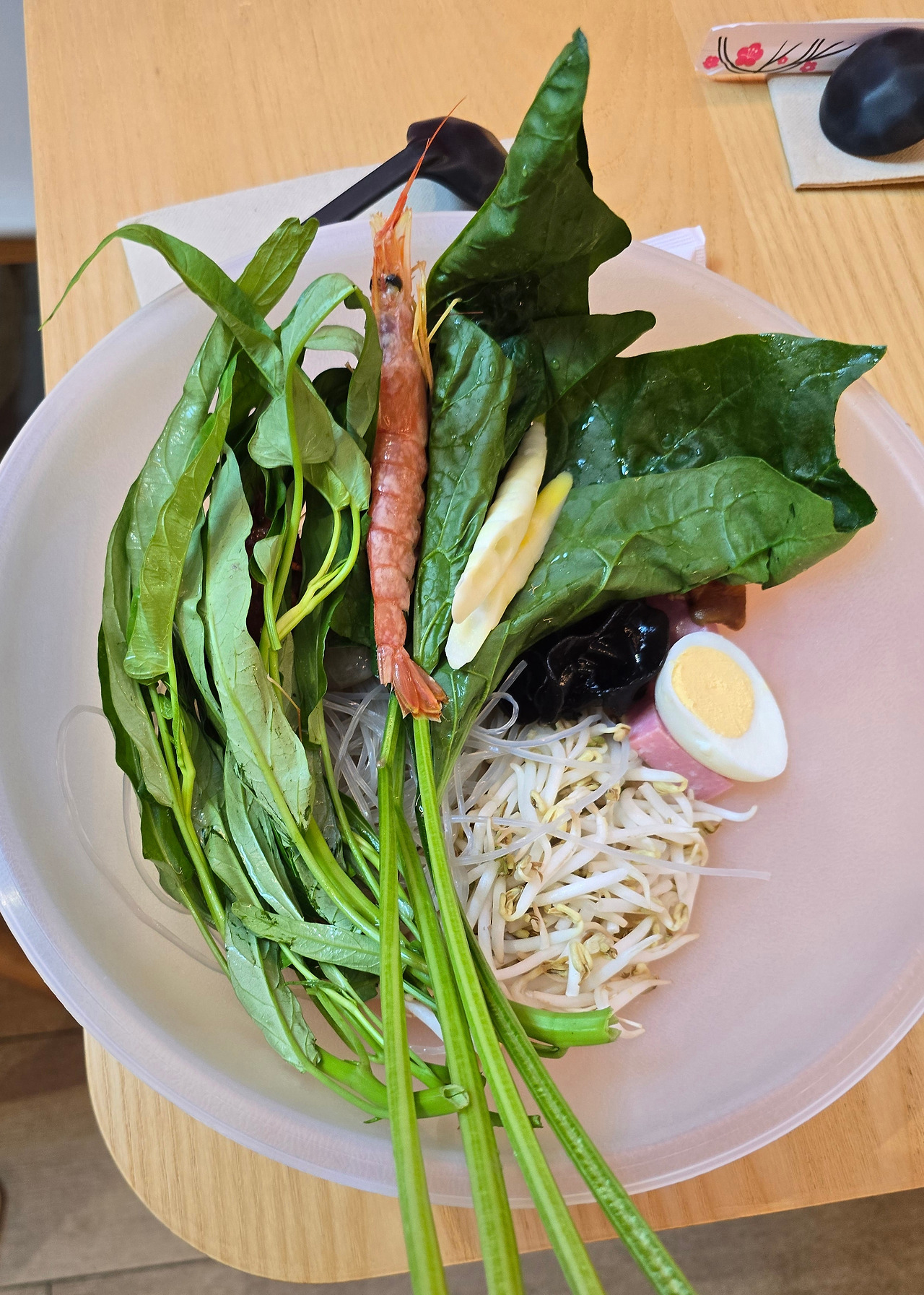 나는 공심채, 당면, 숙주, 목이버섯, 달걀을 선택했다.
