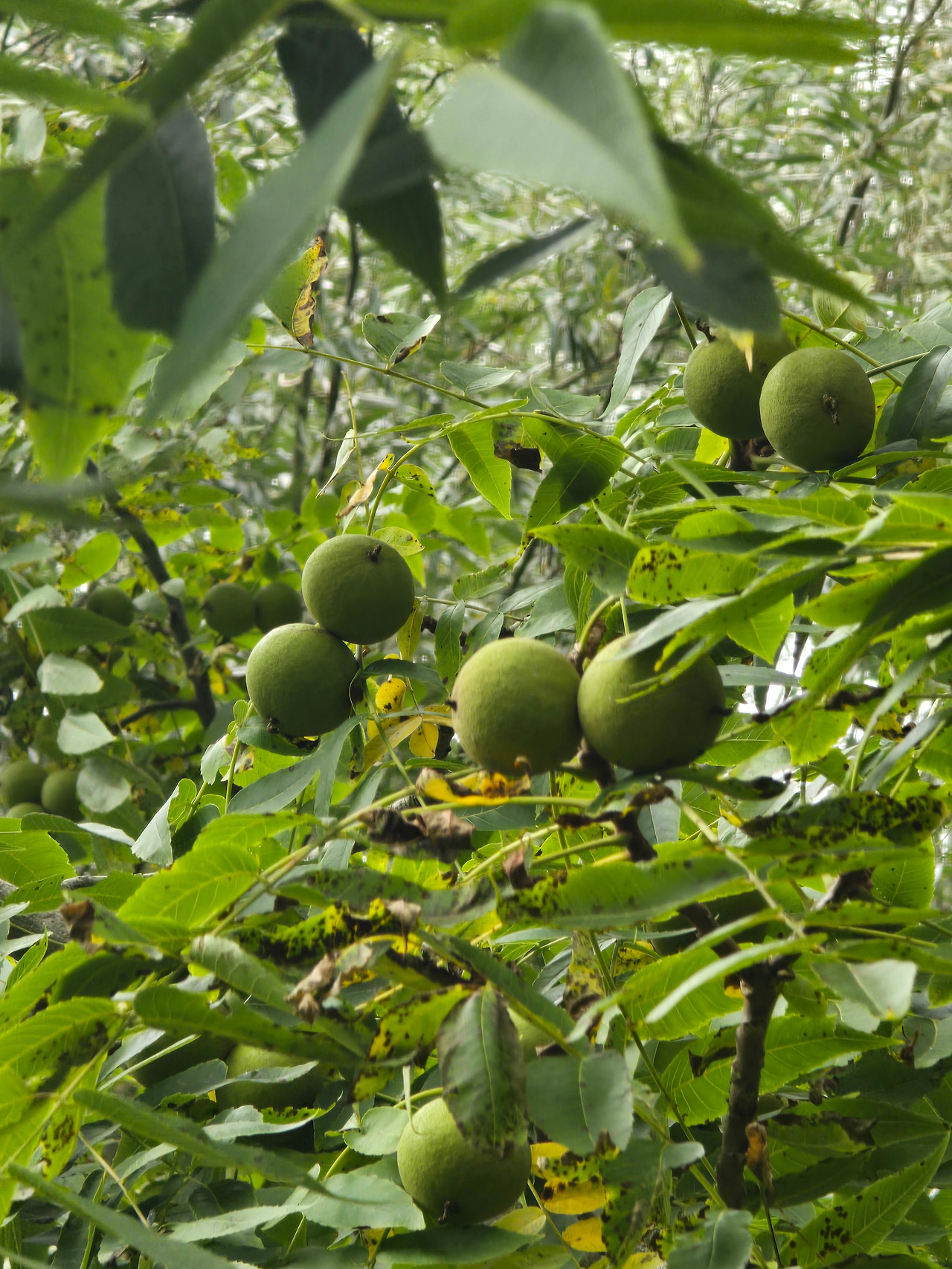 열매가 여기저기 떨어져 있다. 도대체 정체가 무엇일까? 발로 문지르자 호두와는 다른 질감과 무늬의 겉껍질이 드러났다. 얼마나 단단한지 돌로 힘껏 깨트렸지만 끄떡도 하지 않았다.