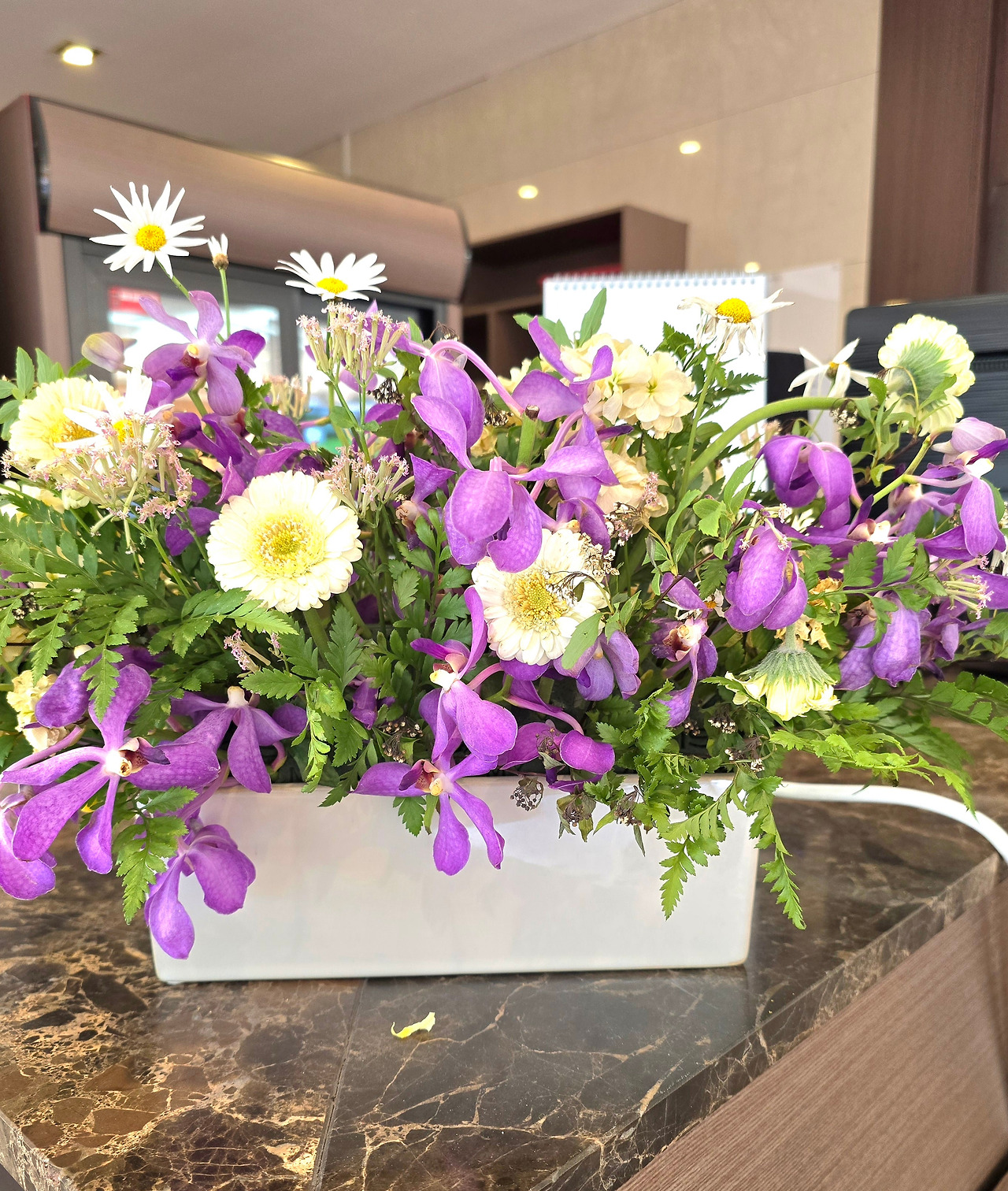 클럽하우스 식당 카운터의 예쁜 꽃들