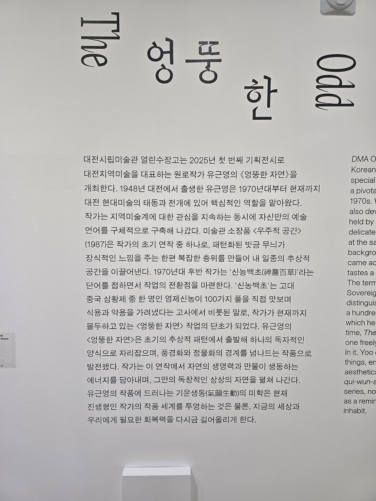 2025년 4월 1일부터 8월 10일까지 대전시립미술관에서 유근영 화백 작품 전시를 한다. 유근영 화백은 남편 중고등학교 동기동창이며 대전 신일여중에 같이 근무하면서 절친한 사이가 되었다.