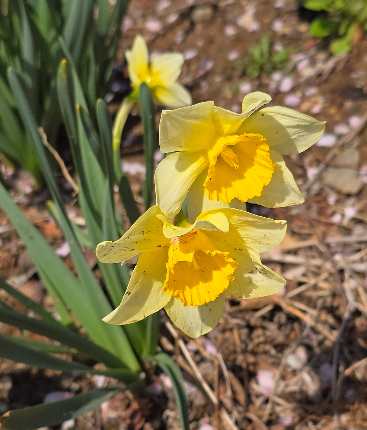 식당 옆 주차장에 수선화가 피어있다. 밤새 내린 비로 여기저기 흙이 튀었지만 싱싱하고 탐스럽다.