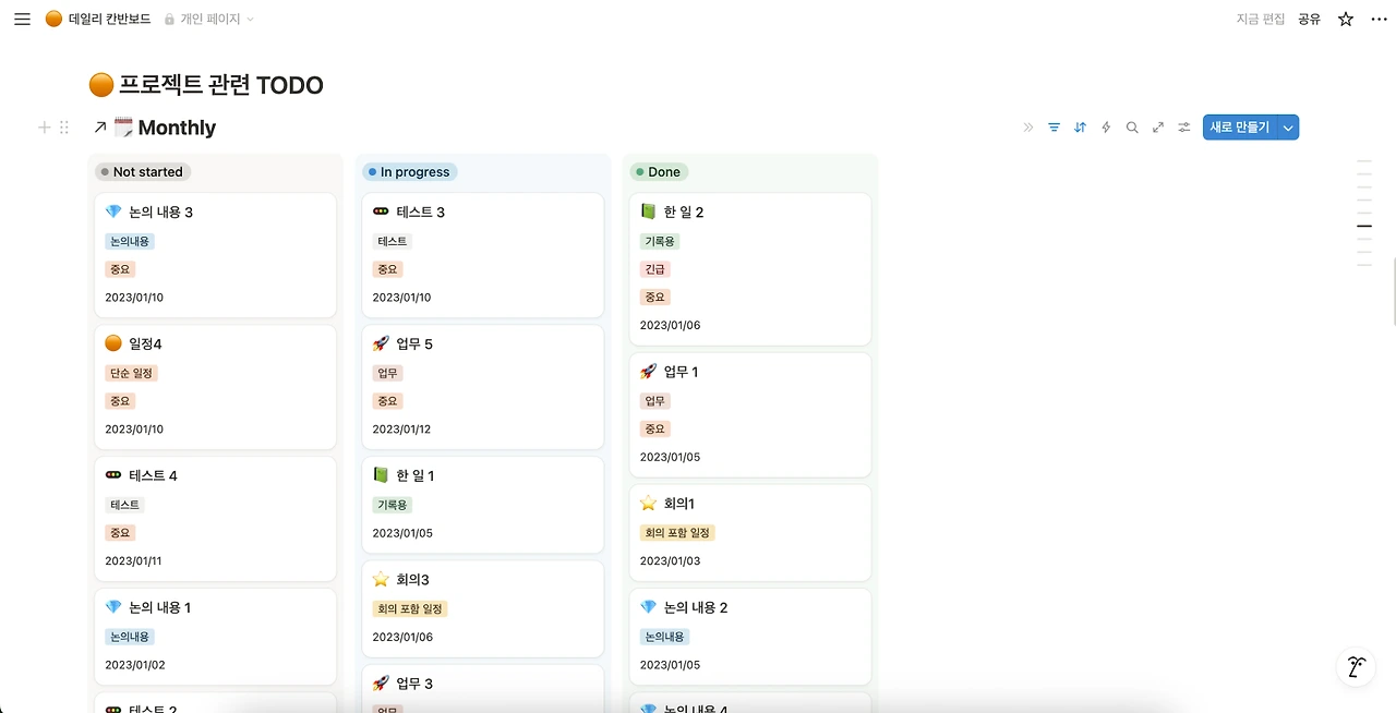 나는 지금 노션(Notion)을 활용해 일정을 관리한다. 퍼블리에서 제공하는 템플릿을 받아 아주 약간만 커스텀해서 쓰고 있는데, 실질적으로는 '테스크(Ticket)'만 생성하면 된다.