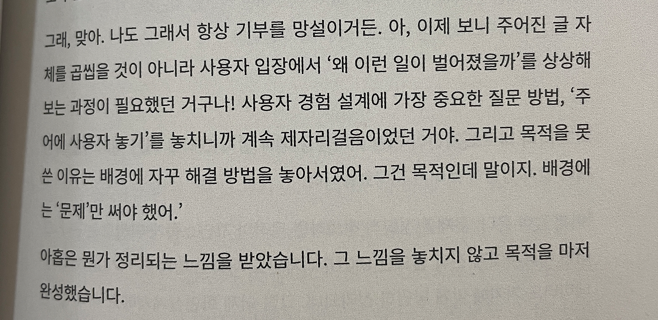프로덕트 디자이너 아홉이 마주한 현실적이고 복잡한 문제들이 너무 실제 같아서, 순간순간 내가 했던 프로젝트들이 겹쳐 보일 정도였다.