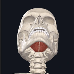 턱목뿔근은 혀의 지지대 역할을 하며 음식을 삼키는 역할과 발성을 돕는다.