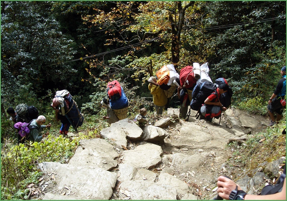어떤 포터는 코펠과 버너는 물론, 접이식 식탁까지 이고 가는데, 그 위태로움과 균형감각이 절묘해서 마치 서커스를 보는 것 같았다. 저 사람들의 목이 저러고도 성한 것인지 걱정스럽기까지 했다.