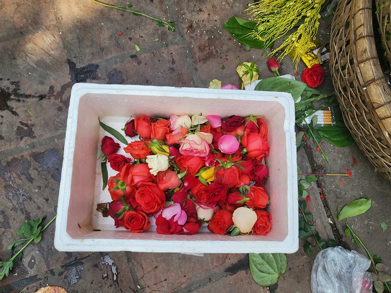 기도를 올리는 이들은 저마다 예쁜 꽃을 올린다. 그래서일까. 시장이 끝나는 길목에서 버려지는 꽃들도 수북하게 쌓여있다. 버려지기엔 아직 싱싱한 꽃인데 말이다. 집으로 가져가고 싶다며 연신 아쉬워했다. 알고 보니 제사에도 몇 가지 규칙도 있었다. ‘세상 단맛 없이 무슨 재미’를 외치는 나의 취향은 신에게도 통하나 보오! 단맛을 좋아하기에 보기만 해도 식도가 녹을 듯한 설탕 담뿍, 과자들을 올린다고 한다. 꽃은 조화도 시든 꽃도 금기시되고 말이다. 이제야 꽃이버려지는 비밀이 풀렸다. M과 나는 꽃을 집으로 가져가고 싶다며 속닥거렸지만 이미 다른 사람이 수거 중이었다. 청소부 복장의 그녀는 재빠른 손놀림으로 장미꽃 봉오리만 따고 있었다. 설마, 저게 어제 마신 로즈 티는 아니겠지.
