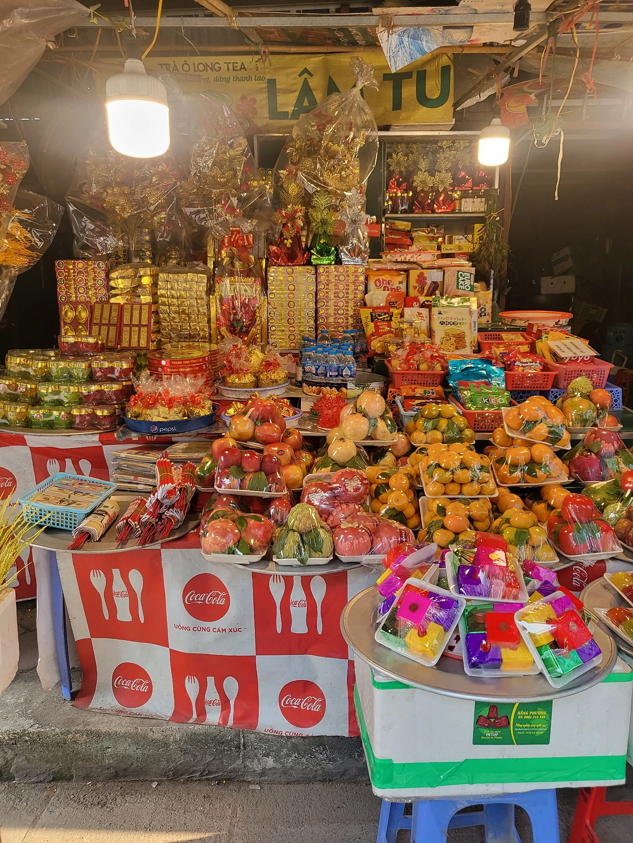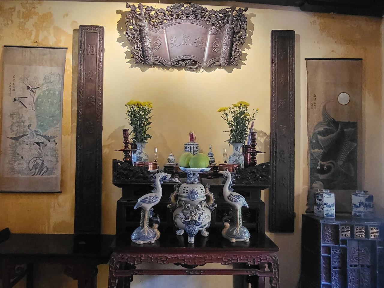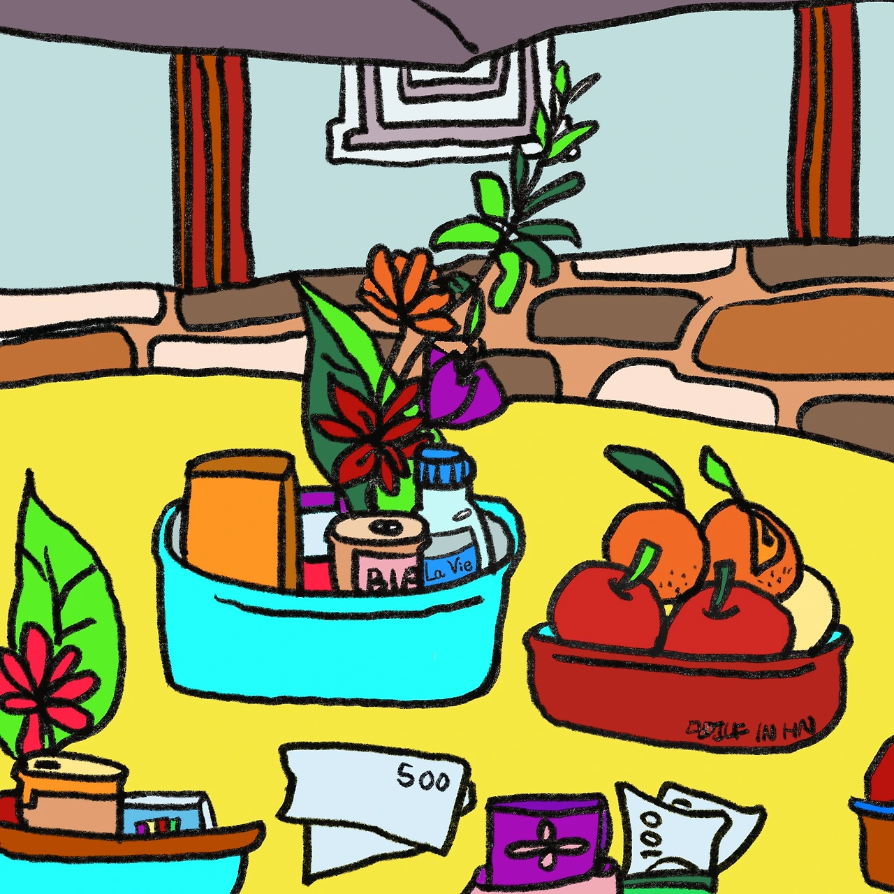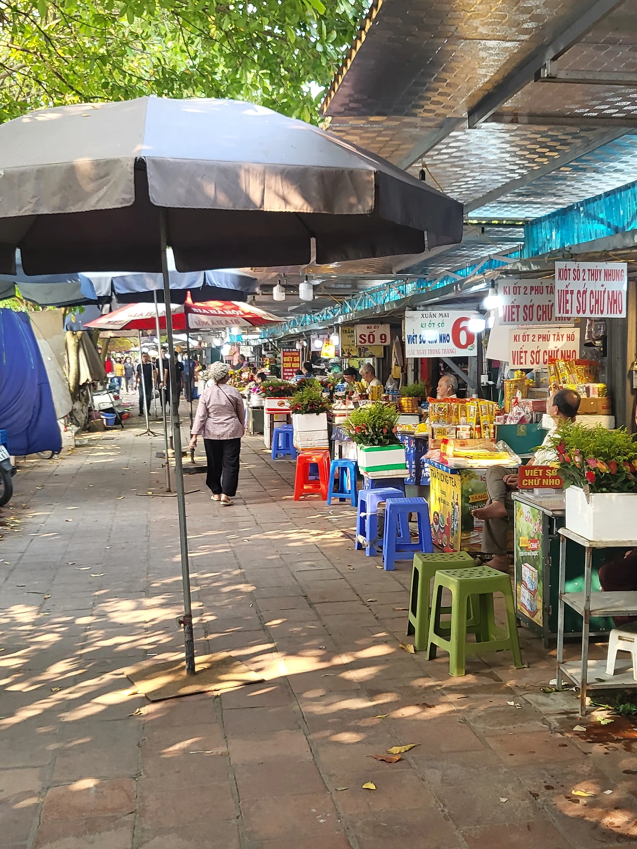 사실 하노이에 처음 왔을 때, 가장 신기한 광경이 제단이었다. 아무리 모던한 레지던스나 카페에도 제단은 빠지지 않는다. 작은 나무 테이블 그리고 화사한 꽃, 각종 과자와 과일이 환한 불을 받아 빛난다. 하루는 레지던스 로비의 정중앙에 위치한 제단 주위를 빙글빙글 돌다 성큼성큼 다가섰다. 그걸 본 이웃집 내니 H는 곧바로 나를 제지했다. 그녀는 제단은 사업장뿐만 아니라 각 가정에도 있다고 설명했다. 사업장은 부를 상징하는 다섯 신을 그리고 가정은 조상신을 위한 것이라며 함부로 할 대상이 아니라고 덧붙였다. 내가 무슨 짓을 한거지? 역시 무식하면 용감하다. 신성시 할 제단을 무슨 크리스마스 트리보듯 했으니 그녀로서는 얼마나 조마조마 했겠나.