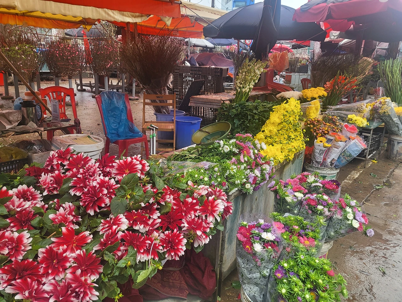 하노이의 겨울은 기승전결 비로 점철된다. 대기를 한 겹 걷어내어 쭉 짜면 물이 한 바가지 쏟아질 듯한 습함이다. 이런 눅눅한 하루에 산뜻한 바람을 일으키는 건 호아(꽃, hoa)뿐이다. 꽃시장으로 고!