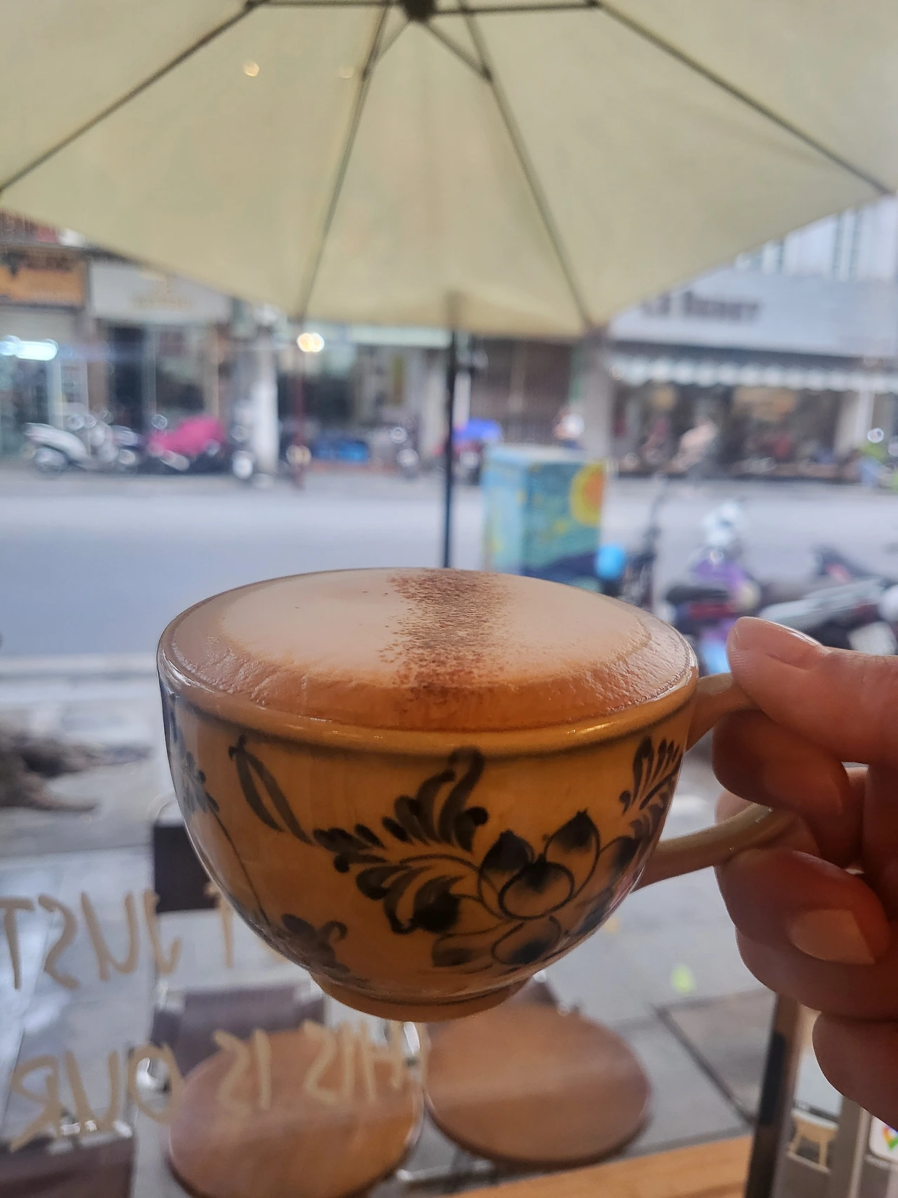 부쩍 흐린 날씨가 계속되는 하노이! 하늘처럼 마음에도 흐린 구름이 끼기 쉬운 요즘 조금이라도 반짝이는 광채를 찾고 싶을 때, 들리는 커피숍이 있다. 이름마저 환한 ‘Lightly Coffee’(라이틀리 커피)! 여행객으로 북적대는 호안끼엠 중심가에서 조금 벗어난 카페에는 대형 타투를 한 사장님이 있다. 처음에는 무뚝뚝한 표정에 외국인인 나를 조금 경계하는 듯했다. 하지만 베트남어로 물꼬를 트자 친절한 메뉴 설명은 물론 사진을 찍도록 가게에서 퇴장까지 해주는 배려도 잊지 않는다. 박력 넘치는 타투를 한 그의 과거는 어떨까. 제멋대로 망상에 젖지만, 라테를 한 모금하자 부질없는 상상은 싹 사라진다. 산미 반 고소함 반의 그의 커피에 그저 건실한 청년 바리스타에 가깝다는 결론을 내렸다. 선혈이 낭자한 과거를 연상하기엔 정직하게 맛있는 커피다. 아무래도 타투 하나에 헛다리를 짚어버리는 한국인은 베트남에 적응하기엔 아직 멀었나 보다.
