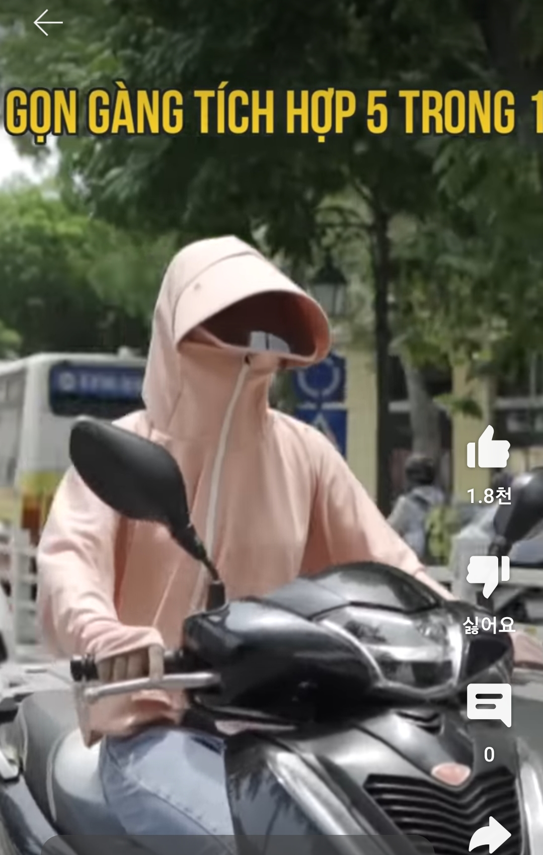 ‘áo chống nắng, 아오 쫑 낭’은 한국어로 ‘햇볕 차단복’이다. 하지만 베트남 사람들이 부르는 별칭은 따로 있다. 바로 ‘아오 닌자’! 역시 아오 쫑 낭의 비주얼을 그들도 모를 리가 없었다. 베트남 친구 H와 T가 알려준 ’ 아오 닌자‘란 단어에 무릎을 탁 치는 한국인! 짝 짝 짝! 오늘도 베트남 지식 1점 획득에 성공하셨군요! 그런데 말입니다~ 더위도 불사한 자발적인 닌자로의 변신, 그것이 궁금하다.