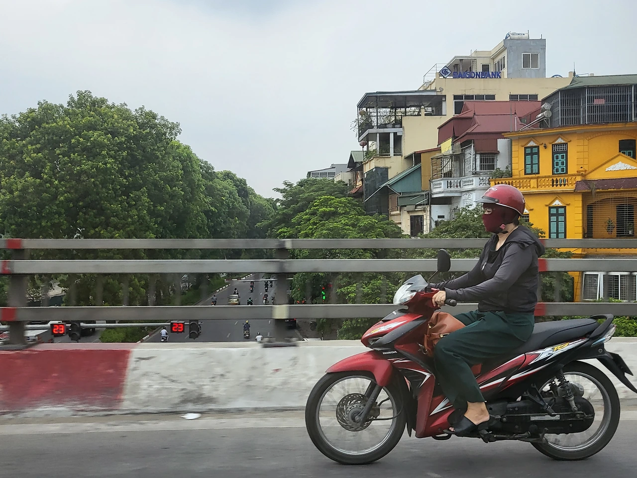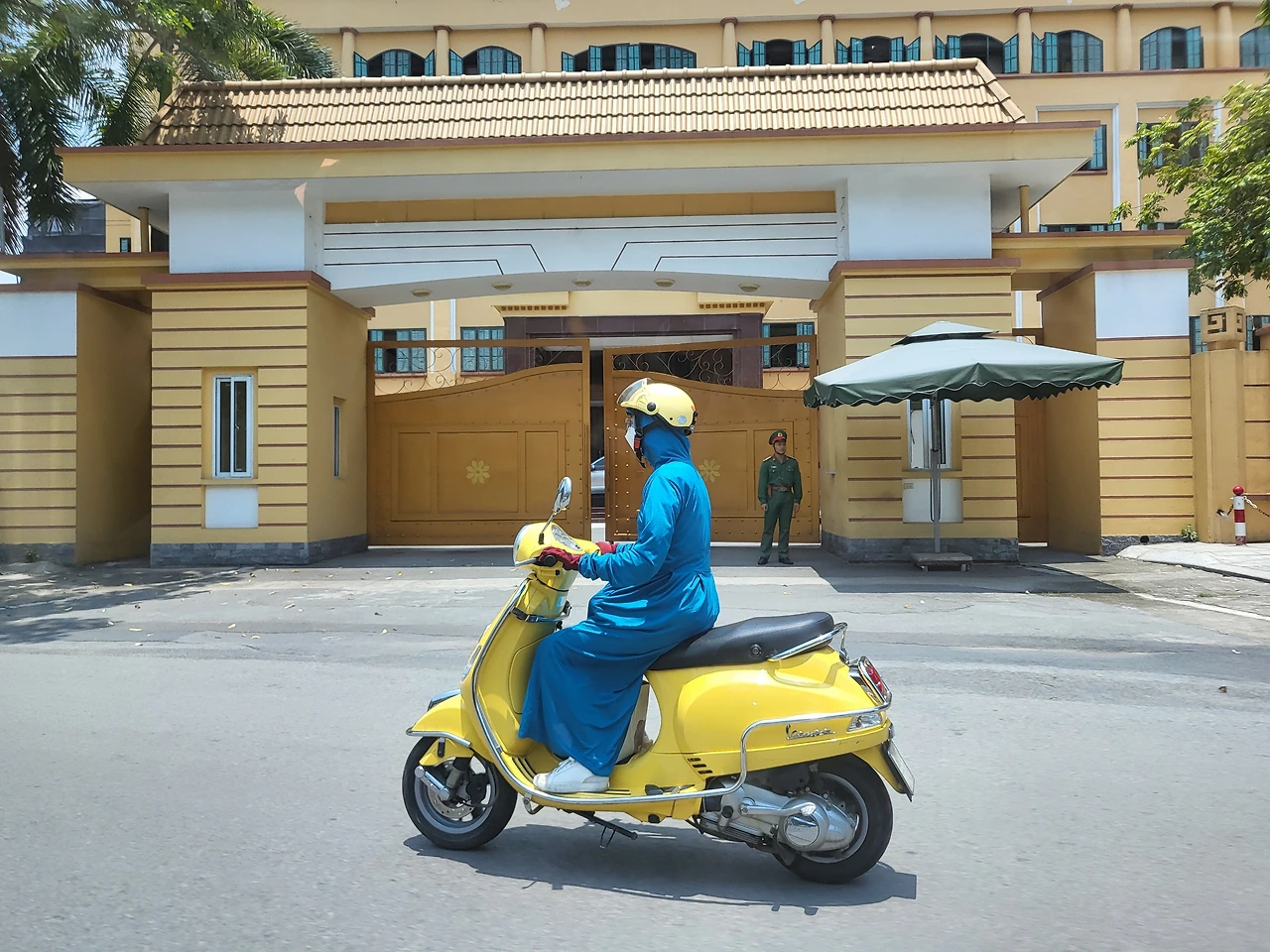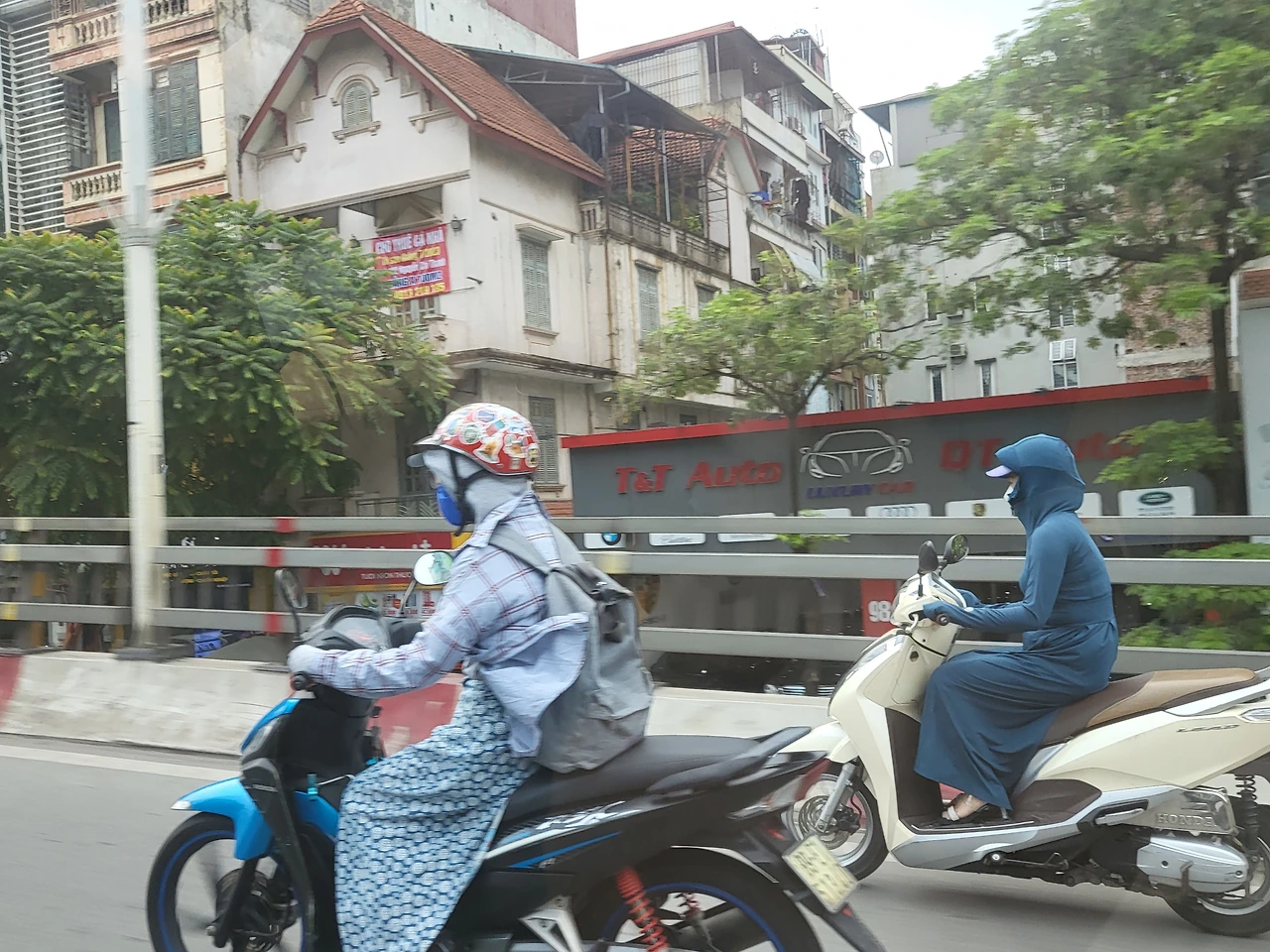 쨍한 하늘, 지글지글 40도를 넘는 뜨거운 하노이! 두피가 타들어가는 햇살에도 머리부터 발끝까지 온몸을 덮고 달리는 그녀들.