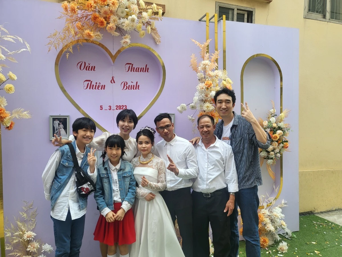 뎁(đẹp 아름다운) 하기 그지없는 담 끄어이(đám cưới 결혼식)에 도착해, 가장 먼저 눈에 띈 건 신랑? 신부? ‘Không!(콩, 아니요!) ‘오렌지와 골드 빛’의 성대한 화환이다. 골목 입구부터 온통 화려한 꽃장식에 입이 벌어졌다. 베트남이 ’ 꽃의 나라‘란 실감이 드는 순간이었다. 집에서 올리는 ‘식’이라 스몰 웨딩을 상상했지만, 소박? 아담이 뭔가요? 먹는 건가요? 역시 베트남은 무엇이든 상상 이상이다. 한국에서는 감히 범접하지 못할 극강의 화려함이었다. 거기에 동네 아니 ‘하이즈엉’ 인구가 모두 모였다고 해도 믿을 인파에 다시 한번 놀란다. 쭌이도 쩡이도 많은 사람들에 압도당했는지 엄마의 손을 꽉 잡았다. 하지만 현지인들 틈에 먼 길을 달려온 외국인 가족을 향한 환영은 따뜻했다. 마을 이장님을 시작으로 큰아버지, 작은 아버지 등의 친인척들에 회사 직원까지 차례차례 함박웃음을 띄우고 인사를 해왔다. 정성 가득한 인사 릴레이는 좀처럼 끝날 줄 몰랐다. 웃는 얼굴을 너무 오래 유지하고 있어 경련이 일 정도였으니 말이다. 이런 갑작스러운 스포트라이트는 성격 유형 I의 심장엔 해로운 걸요! 누가 뭐래도 오늘의 주인공은 신부가 아닌가. 하지만 신속한 자리 안내, 음식, 음료 등 혼신의 힘을 기울여 환대하는 모습에 우리 가족도 금세 분위기에 녹아들기 시작했다. 쩡이도 화려한 드레스의 신부가 공주 같다며 눈을 떼지 못했고 말이다. 사실 남편이 하노이에서 가족을 동반하고 행사에 참여하는 건 드물…... 아니 최초다. 바쁜 업무로 대소사에 잦은 결석을 하다 보니 소위 ‘프로 불참러’로 불린 그이다. 하지만 이번만큼은 절대 빠질 수 없는 이유가 있었다. 이 선남선녀는 남편과 함께 일하는 온전한 ‘사내 연애’의 결실이었기 때문이다. 맞습니다. 유니콘처럼 소문만 무성한 환상 속의 ‘사내커플’입니다. 영화, 드라마에서만 있는 게 아니었어! 신성한 결혼식에 이런저런 러브 스토리를 제멋대로 상상해 버린 한국 아줌마라 죄송합니다! xin lỗi 신 로이!