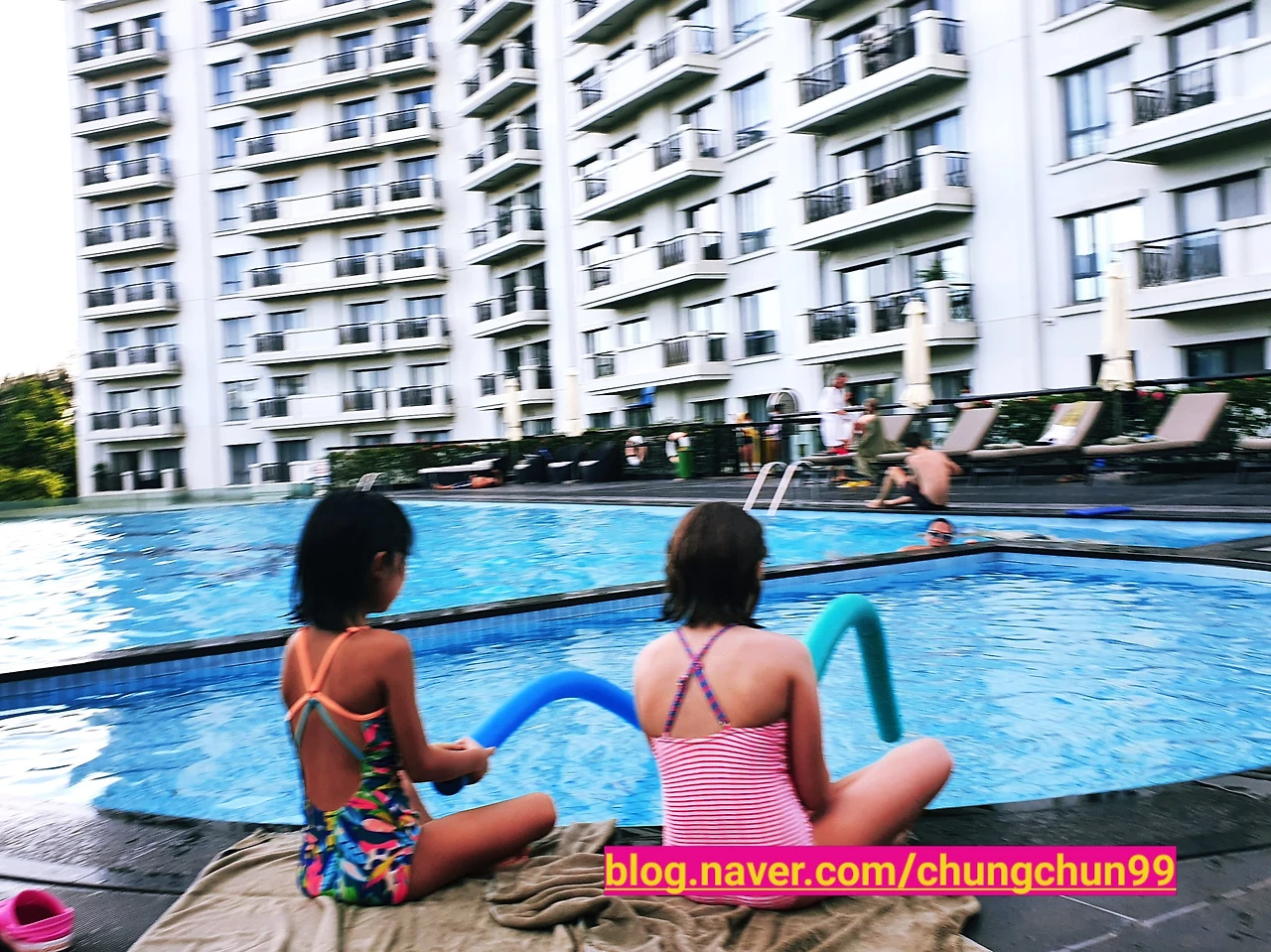 풀장에서 낚시를 하겠다며, 사진 촬영을 부탁했다.