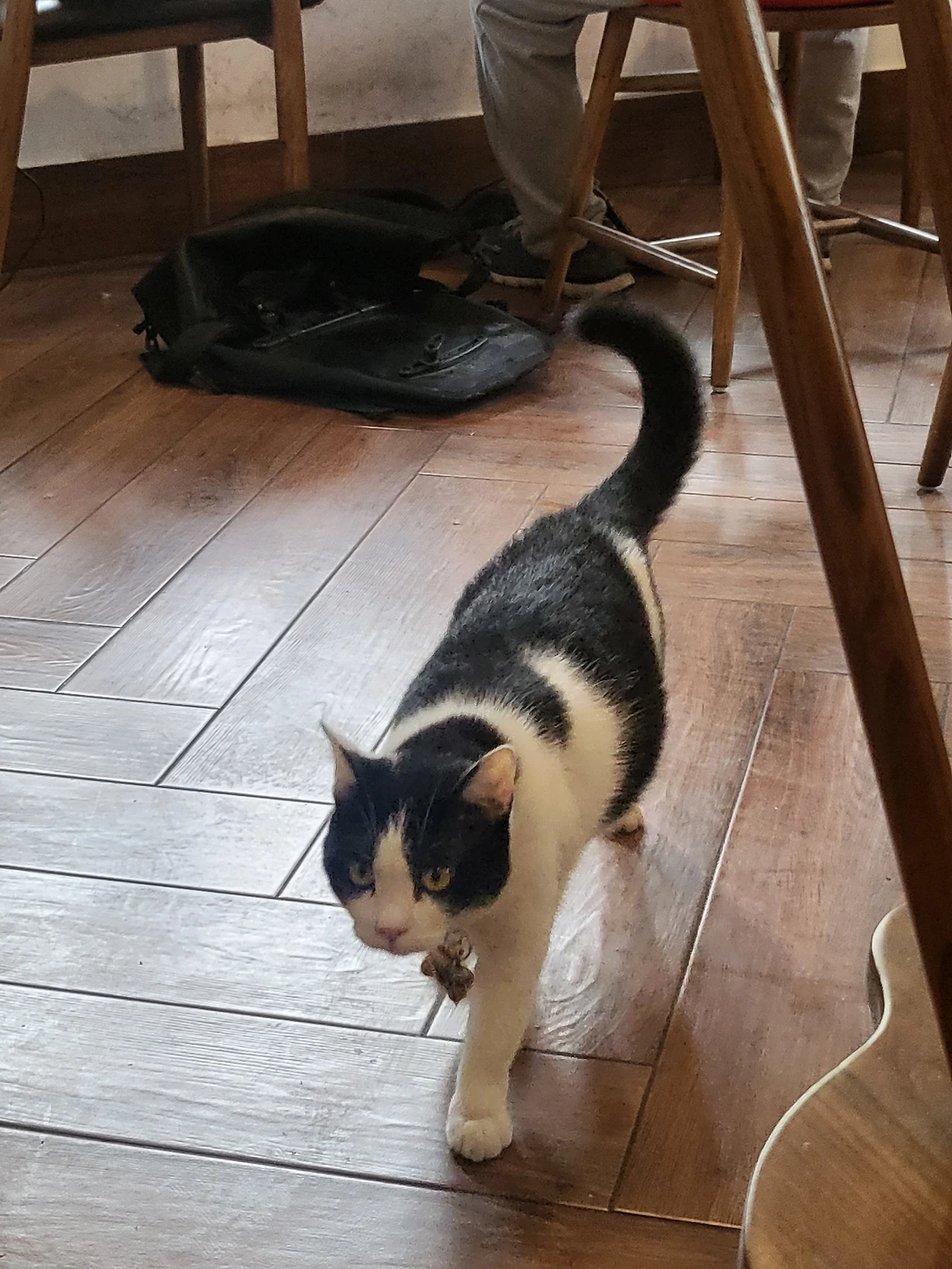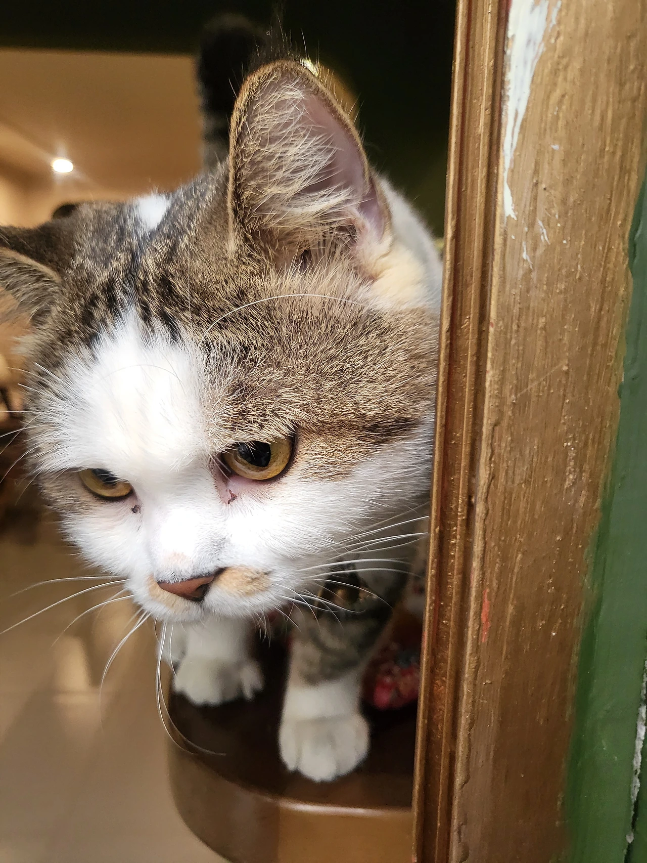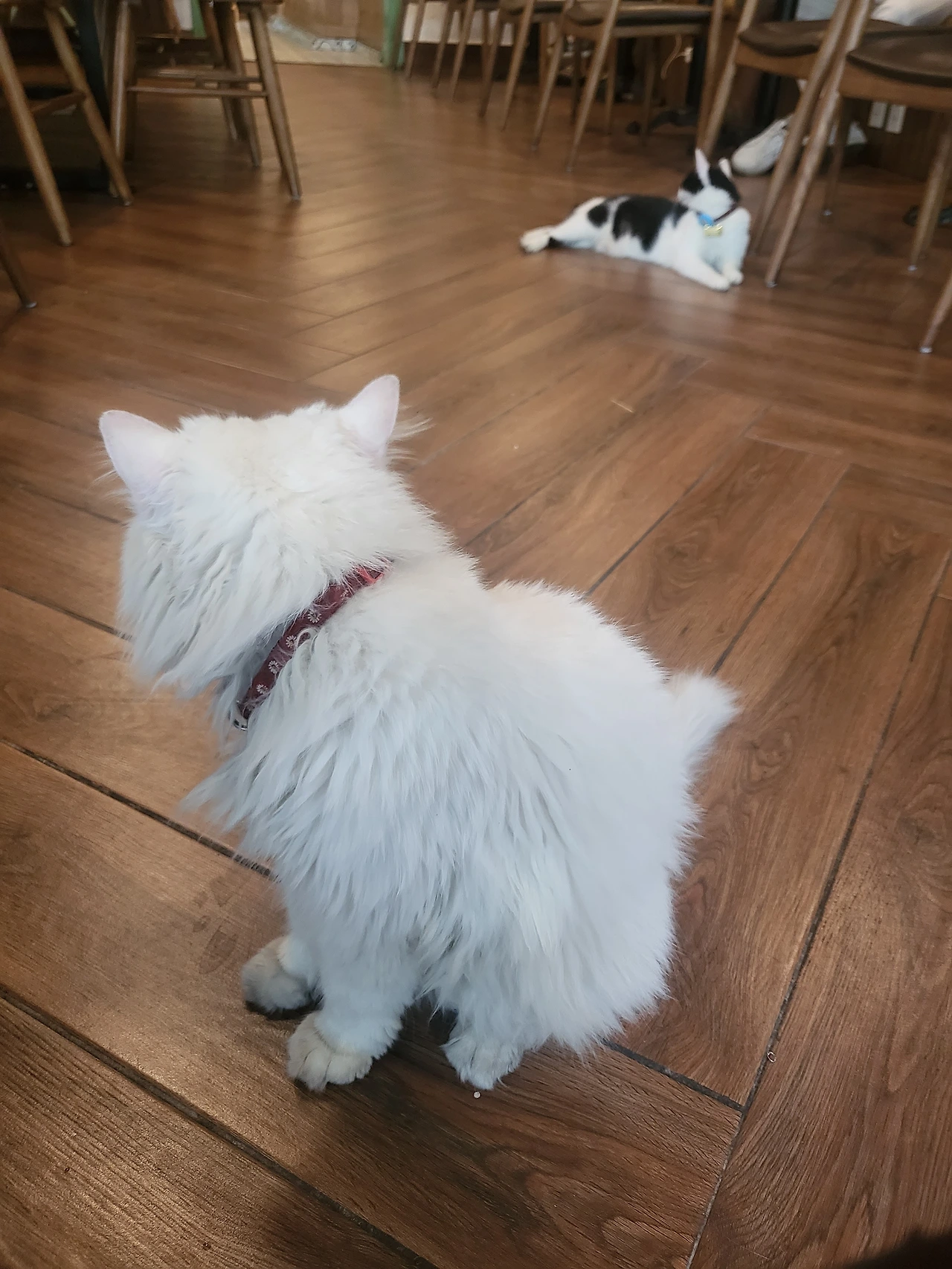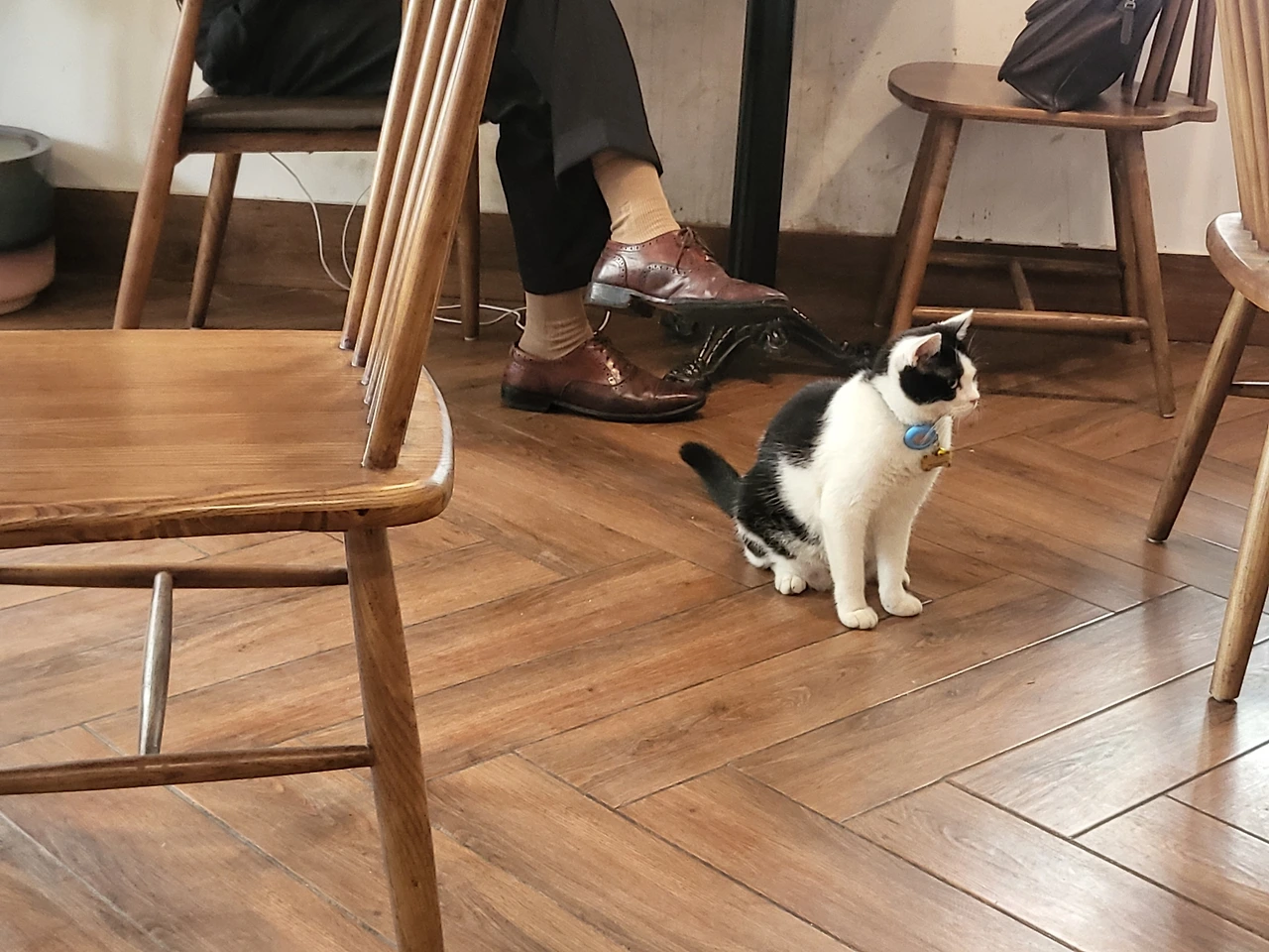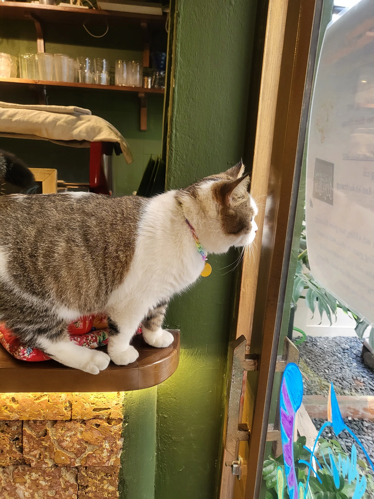 한참을 바라보다가 카페를 나선다. 하지만 발길이 떨어지지 않았다. 의자를 빼고 가방을 챙기는 손이 이렇게 굼뜰 수 있구나. 아쉬움 가득한 이별의 순간! 웬걸, 갑작스러운 턴으로 방향을 틀었다. 내게 배웅인사를 하러 와준 걸까. 또 한 번 심쿵, 요런 매력적인 고양이 같으니라고~