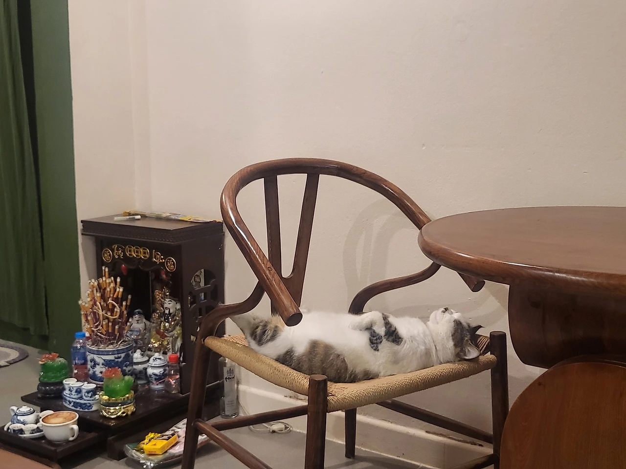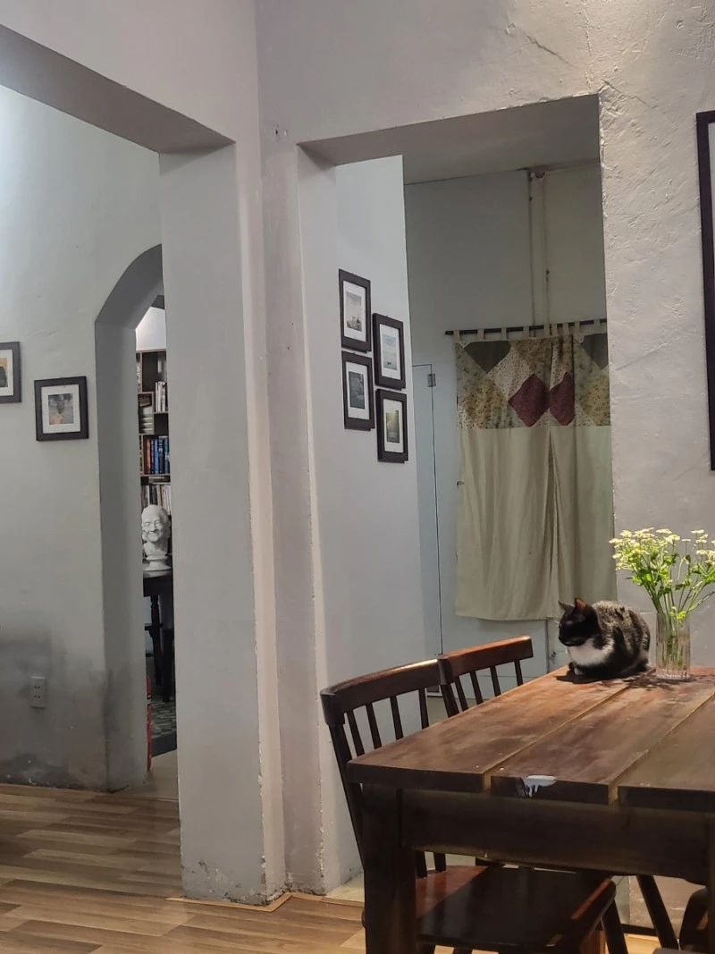 테이블 마저 잘생겼잖다. 무생물이지만 제멋대로 남자라고 엮어버리는 부산 뇨자~ 그리고 핸섬한 테이블을 정복한 건 바로 꼰 메오, 고양이! 무생물부터 생물까지 완벽이란 이런 거지. 그대들을 비추는 불빛 그리고 그림자, 구석구석에 들어찬 틈까지 흠잡을 게 1도 없다.
