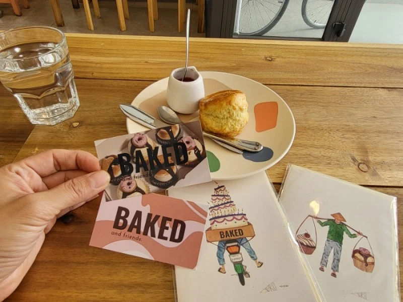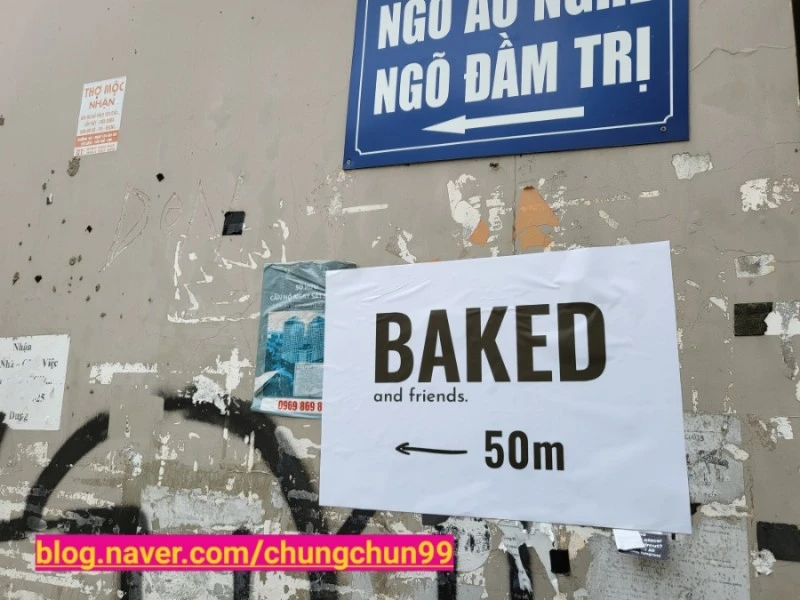 겸손한 벽보가 아니면 네버 들어설 일은 없다. 50 미터가 어느 정도인지 도통 알 수 없는 길치랍니다. 일단 직진하고 모퉁이를 돌아보니 ‘BAKED’ 도착했다. 호수 뒤편으로 이렇게 조용한 곳이 있다니. 떠이호(Tây Hồ, 서호)는 무궁무진한 동네야.