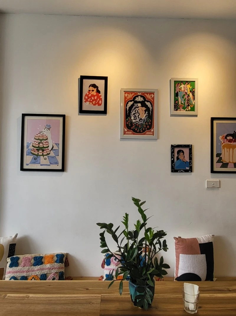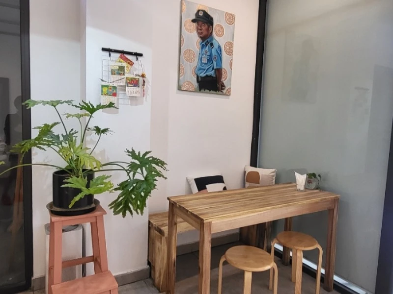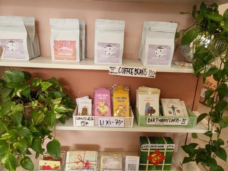 하마터면 카메라를 쥔 채 문워크로 등장할 뻔했다. 등장부터 요란한 등짝에 꽂히는 뜨거운 시선! 열 장쯤 찍고서야 인기척을 느낀 거 실화냐. 본능에 올인하고야 말았지만 부끄럽지 않아. 앞치마에 패셔너블한 뿔테의 그녀! 밝은 미소로 손짓을 한다. 유창한 영어를 구사하는 능력자이자 주인은 “플리즈 컴인 Please come in.”을 외치며 가게로 초대했다. 공간은 사람을 담는 그릇, 곳곳에 묻어 나오는 그녀의 취향이 탐난다. 그림 한 장, 벽 페인트 하나까지 허투루 놓은 게 하나도 없다. 좋아하는 아티스트, N이 직접 한 벽화 작업과 그림이 반갑다. (당시 하노이에서 활발히 활동하던 그녀는 지금 남화공으로 돌아갔다는 아쉬운 소식...) 이래도 안 반해?!