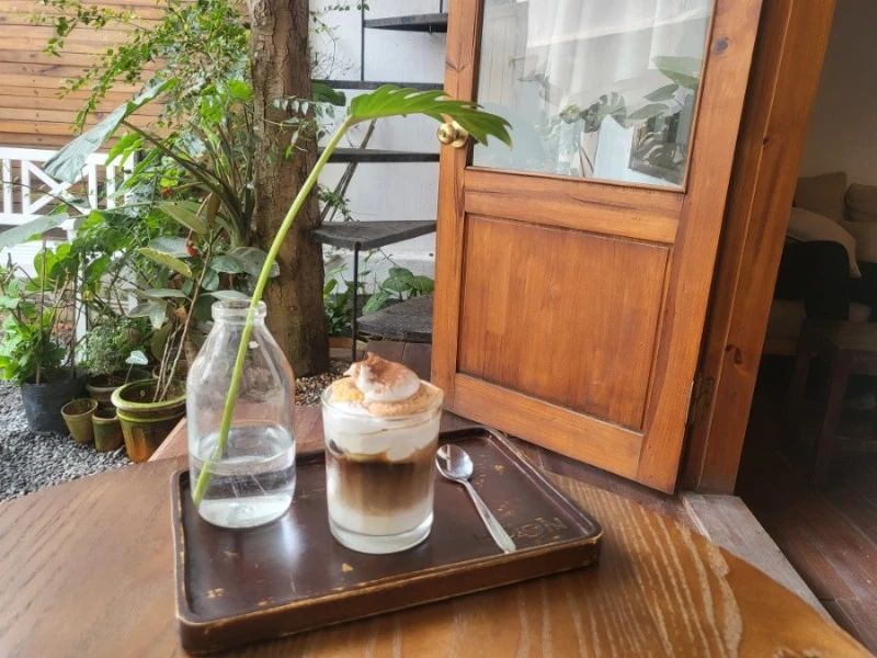 더 특별해 보이는 건 이질적인 주위 분위기 덕분인지도 모른다. 커피 향이라곤 한 톨도 없어 보이는 동네니 말이다. 두 눈 부릅 용이 웅장한 사원, 찌르릉 자전거를 탄 여고생들과 공을 차는 동네 꼬마들의 웃음소리가 퍼지기 때문이다. 배경은 온통 흑백인데 카페만 선명한 컬러를 품어, 돌출되어 보인달까.
