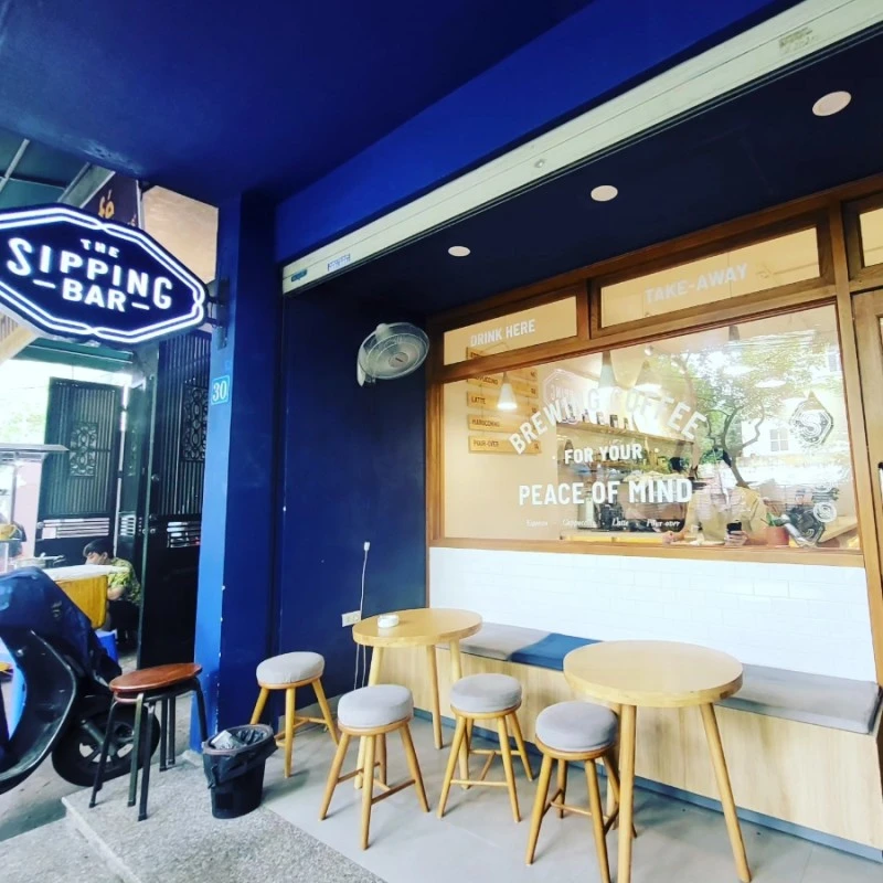졸음이 쏟아지는 오후, 하노이를 홀짝이는 카페러버는 일본인 타운, 바딘으로 향했다. 유행 타는 화이트 인테리어나 사진 백만 장을 찍는 엠지 세대들이 가득한 포토 스폿 따위 필요치 않아! 묵직한 블루 페인트와 단정한 간판에 치이고 커피 맛에 정신을 잃은 더 시핑 바는 존재 그대로 멋지니깐!