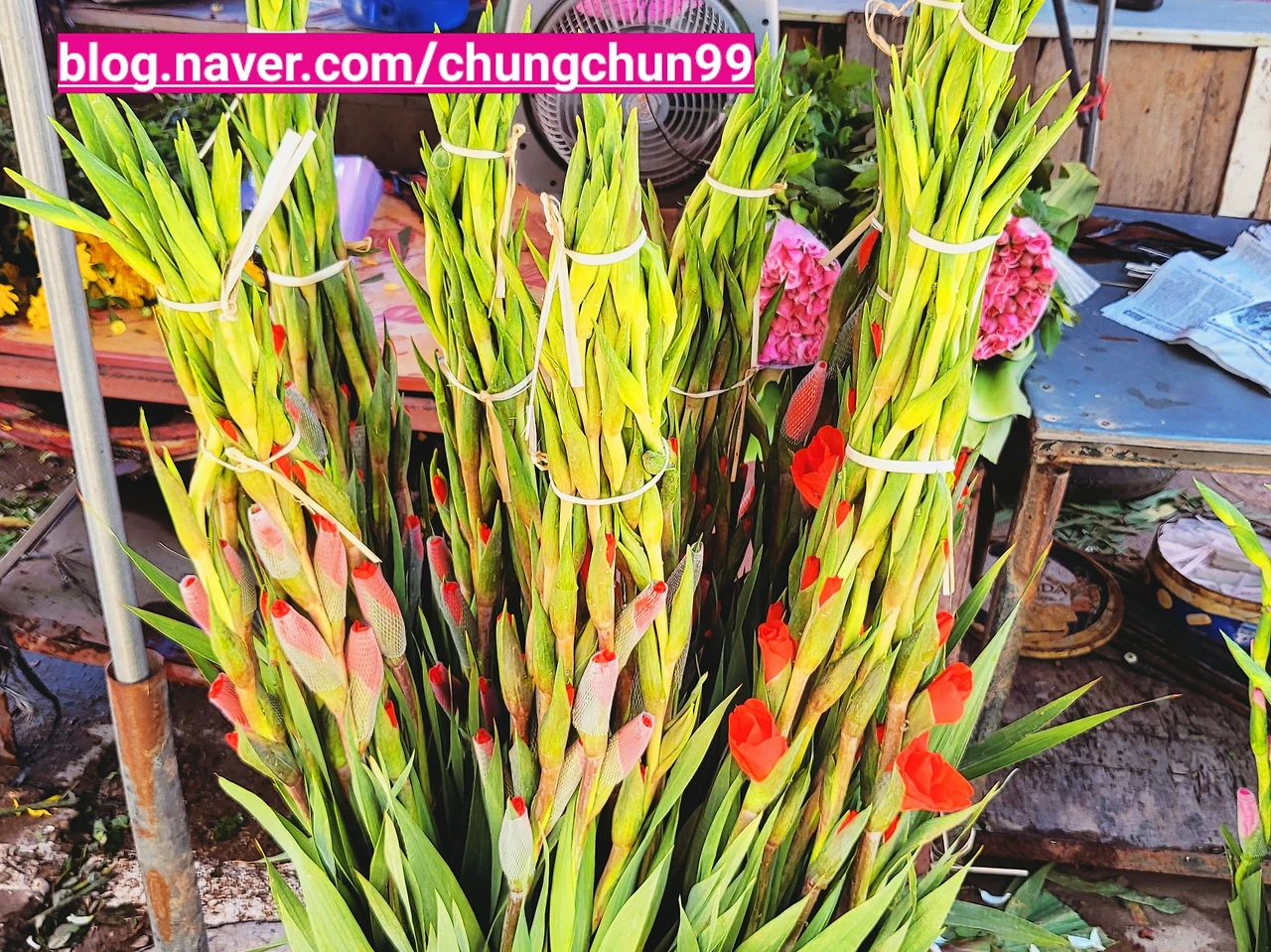 글라디올러스(gladiolus)의 어원은 검 (sword)이라고 한다. '글라디올러스'를 파는 그녀들의 진검 승부는 내가 시장을 떠날 때까지도 계속되고 있었다.