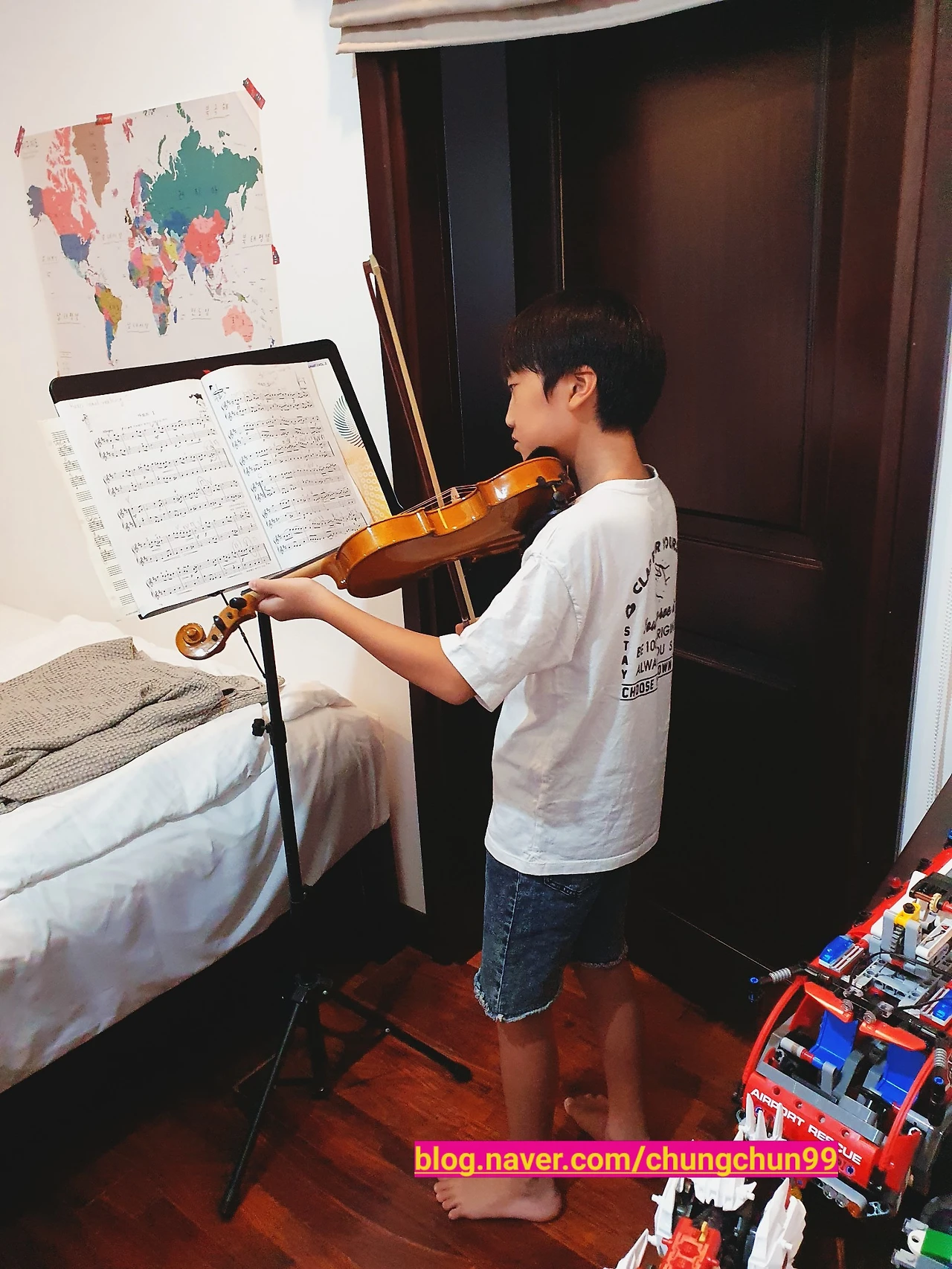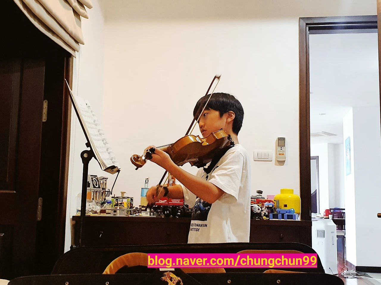 그리고 요즘 쩡이와 쭌이는 나의 바이올린 선생님이 되어 저녁마다 연습을 도와준다. 아이들은 초보인 엄마를 가르치는 걸 즐거워한다. 나 또한 활을 잘 쥐는 아이들을 진심으로 부러워하고 칭찬을 하니, 많이 신나 한다. 결국에는 쭌이와 쩡이가 서로 자기 말이 맞다며 싸우다가 마무리되지만 말이다.