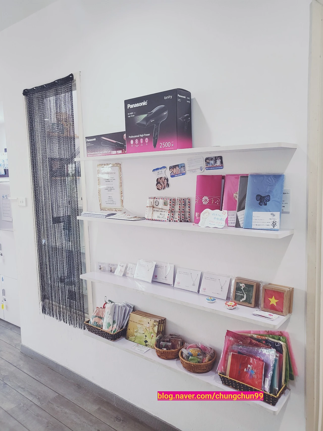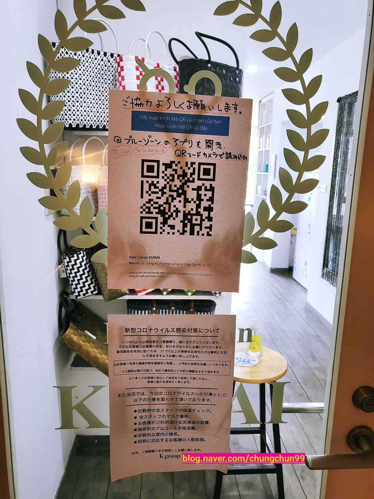 ‘쿠카이 くかい ’는 '마치 일본에 있는 듯한 공간 まるで日本にいるかのような空間'을 표방한다. 그래서인지 입구부터 아기자기한 카드나 가방 등의 소품이 전시되어 있었다. 그리고 오후 5시 이후에 방문하는 손님에게는 무료로 시원한 맥주를 준다는 안내도 거울에 붙어 있었다. 일본에서는 보지 못한 획기적인 서비스다. 미용실에서 맥주라.. 하노이에서만 가능한 미용실이면서도 너무나도 일본스러운 미용실, 어딘가 모르게 묘하다. ‘쿠카이’는 하노이와 일본 사이 그 어디쯤에 있는 걸까.