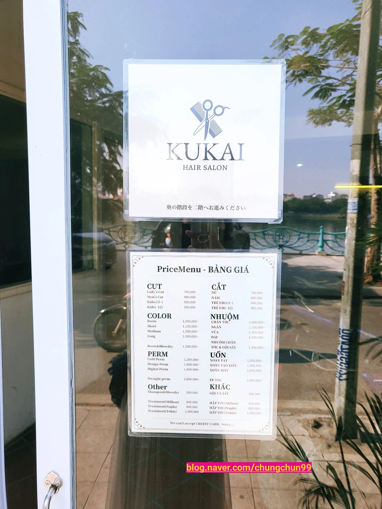 먼저 가격을 확인해 보았다. 일본 미용실은 로컬에 비하면 2배 이상 가격이 비싸다. 로컬이 여성 커트비가 20만 동 - 30만 동이라면 일본 미용실은 76만 동, 한화 3만 8천 원이다. 하지만 한국의 ㅎㅁㅈ, ㅂㅅㅊ과 같은 빅 브랜드 미용실과 별 차이가 없다.