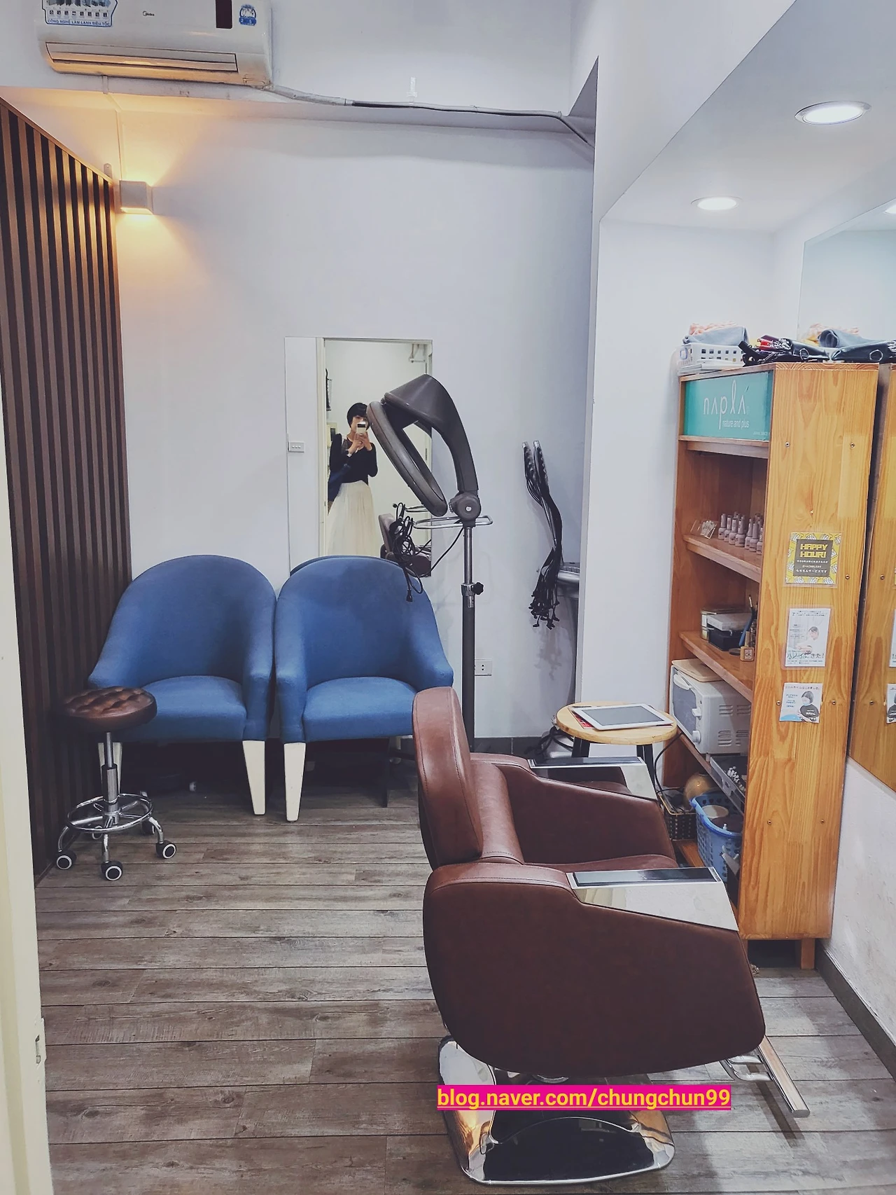 하노이 길거리에서 가장 많이 볼 수 있는 3대 간판은 ‘퍼’(phở), 카페(quán cà phê) 그리고 미용실(tiệm cắt tóc)이다. 길거리에서 의자와 거울 하나씩 놓고 자르는 간이 이발소를 포함해 로컬 미용실은 발에 채일 정도로 많다. 열 발만 가면 보인다고 해도 과언이 아니다. 그리고 나는 지금.. 일본 미용실에 앉아 있다. 이건 또 무슨 황당한 시추에이션?