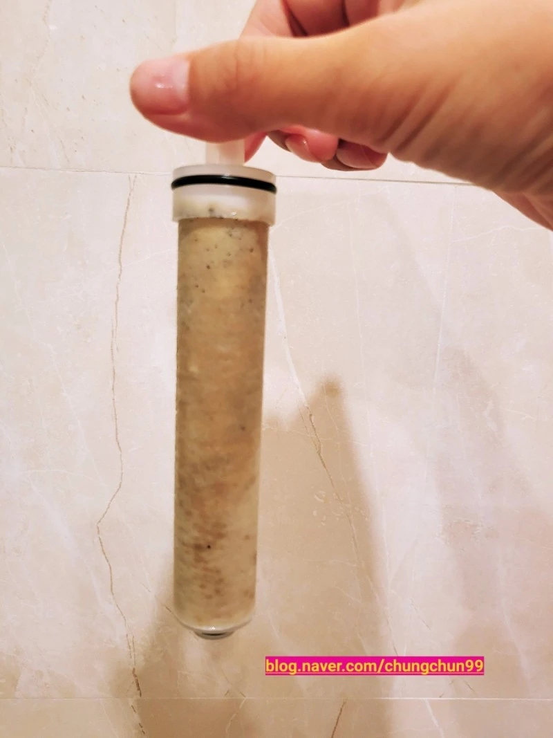 상황이 이렇다 보니 싱크대는 물론 각 욕실의 샤워기까지 모두 장착한 상태다. 물론 요리와 식재료 세척에 생수를 사용하는 것은 기본이지만 몸에 닿는 물도 조심해서 나쁠 건 없다. 처음 하노이에 왔을 때 ㄹ사의 필터를 들고 왔다. 하지만 리필과 본체가 금세 망가졌다. 그래서 베트남에서 필터를 구매했다. 당장 눈에 띄지 않아, 성능에 의구심이 들다가도 누렇게 변색되는 필터를 보면 확실히 안심이 된다.