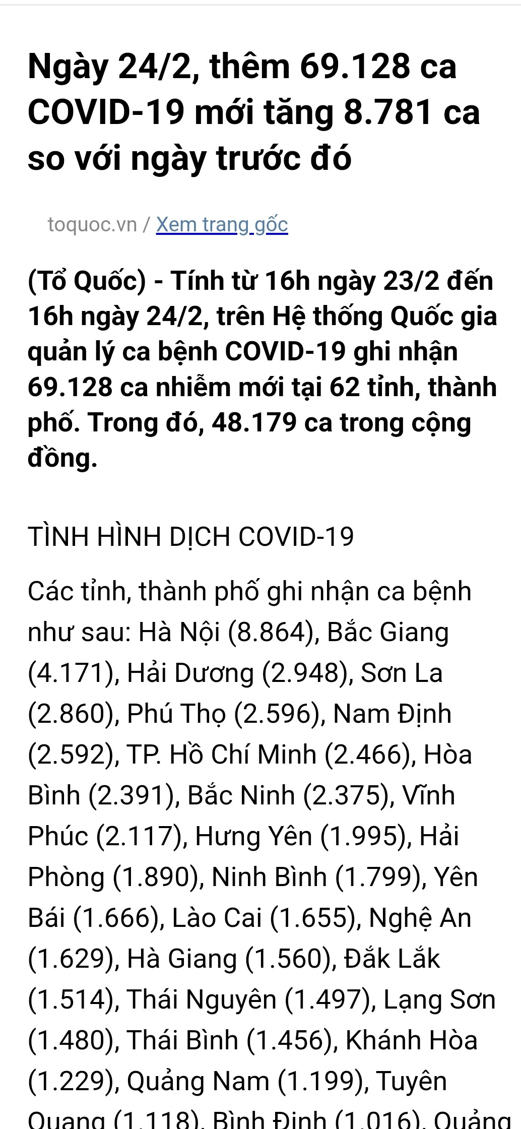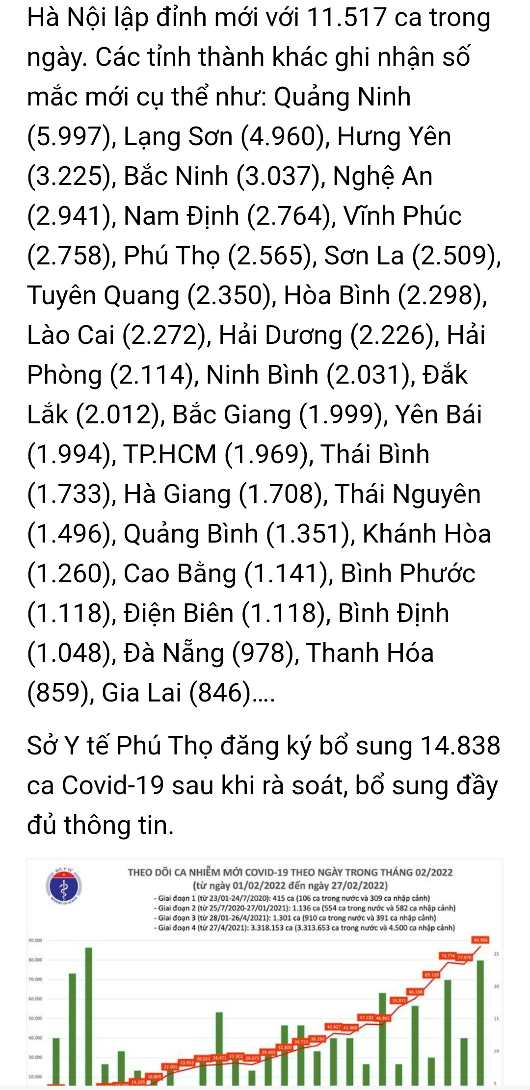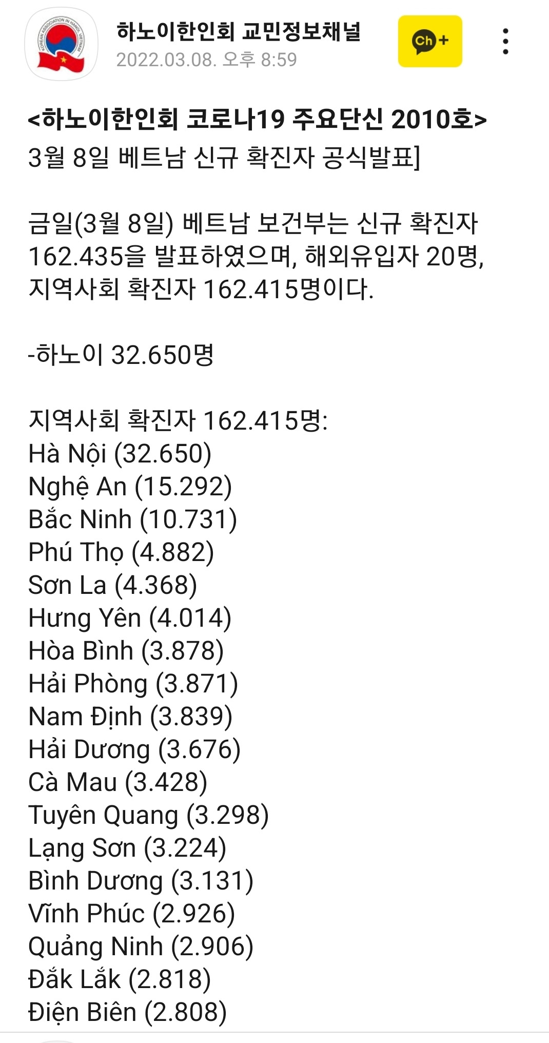 노옵! 이것은 바로 하노이 확진자 숫자다. 2월 21일 월요일부터 27일까지 매일 앞자리를 갈아치우더니 결국 네 자리 숫자에서 다섯 자리 숫자로 단위로 바뀌었다. 2년 하고도 반년의 코비드 역사를 매일 갱신한 것이다. 2월 11일까지만 해도 3천 명을 넘지 않았는데, 2월 17일에 들어서면서 3893명을 기록하더니 3월 6일에는 3만 명을 거뜬하게 넘었다. 지난주부터 2만 명 대 그리고 이번 주는 만 명대로 떨어져 조금씩 나아지고 있지만 여전히 만 명을 넘기고 있다.