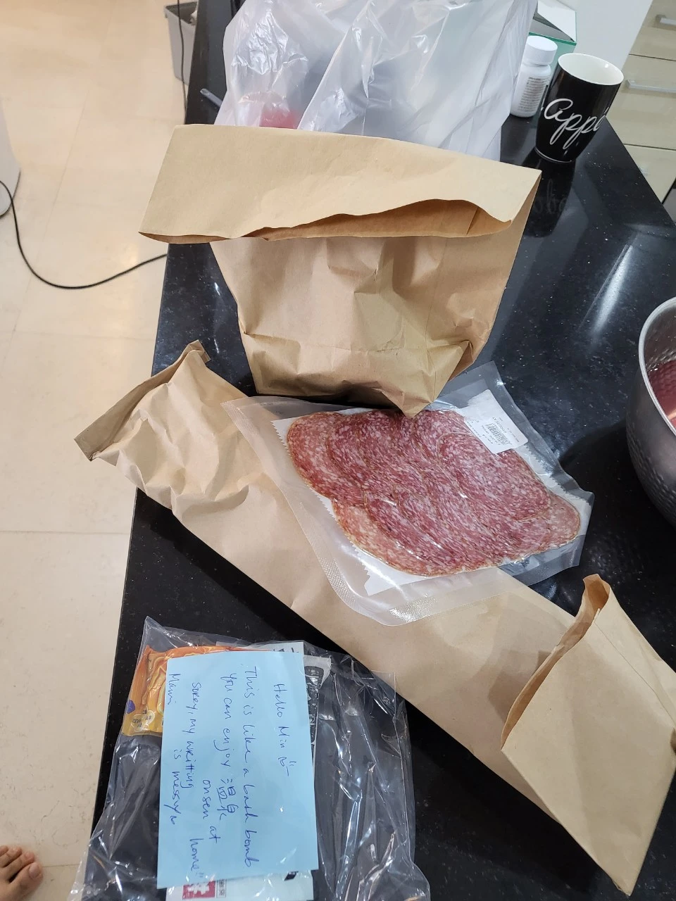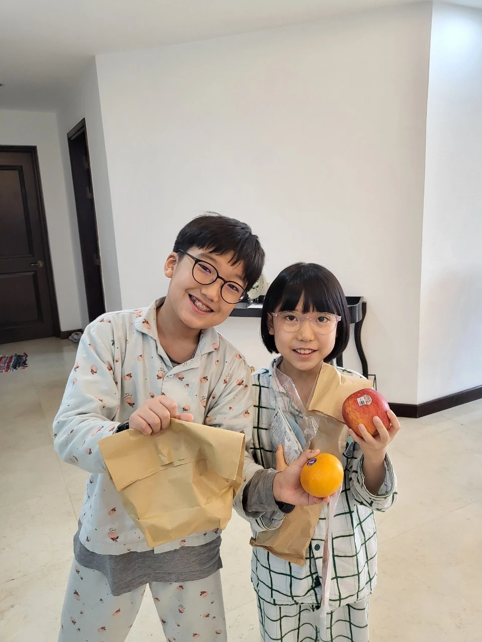 사실 2월은 우리 가족에게도 남다른 시련의 시간이었다. 남편의 기사 H가 확진이 된 것이다. 1월에 격리를 했는데, 또다시 격리를 해야 했다. 왜 이런 시련을 안겨주는 걸까 하고 흐린 겨울 하늘을 우러러 울부짖기도 많이 했다. 호떠이에서 뜬금없는 늑대 소리가 들렸다면... 바로 나다. 많은 친구들은 ‘재’ 격리를 하는 내게 “Poor, Min!”이라는 문자로 위로를 했다. 또한 문고리에 과일이나 과자 등의 먹거리를 가져다주는 친구들로 하루하루를 감사히 보냈다. 알아주는 꽃순이가 꽃을 그리워할 것을 안 프렌치 B와 일본인 M은 꽃을 선물해주었다. 어여쁜 꽃다발을 받고 분노의 롤러코스터에서 내려올 수 있었고 말이다. (플라워 세이브 더 칠드런!) 아이들은 24시간 파자마 차림이었지만 거의 매일 오는 문 앞 구호품을 확인하느라 나름 바쁘게 지냈다. 그리고 사진을 찍어 감사의 메시지를 보내는 일이 소소한 일상이자 기쁨이 되고 있었다. 무엇보다 다행스러운 것은 가족들은 모두 무사했다는 것이다. 두 번째 격리도 그렇게 무탈하게 지낼 수 있었다.
