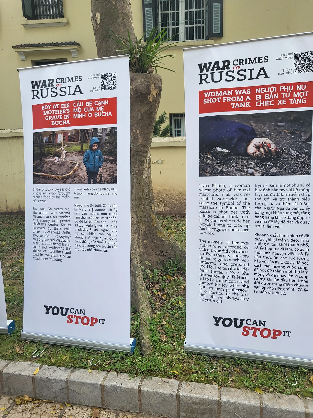 대사관에 처음 발을 들여놓았을 때는 그저 작은 후원의 기분이었다. 하지만 행사가 시작되고 한편에 걸린 러시아 군인들의 만행을 알리는 기사들을 직접 눈으로 보니 발걸음이 떨어지지 않았다.