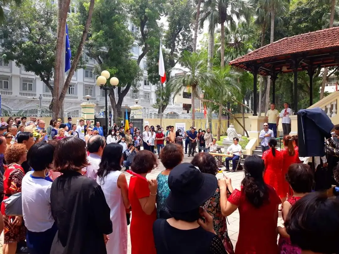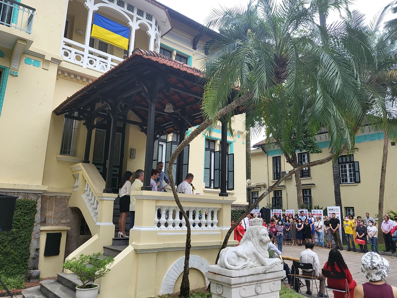 이날 참여한 밴드와 베트남 합창단은 우크라이나의 애국가를 불렀다. 기대 이상의 하모니와 목소리에 가슴이 먹먹해졌고 말이다. 반대편에서 우크라이나 애국가가 나오자, 함께 부르며 한 손을 가슴에 올린 젊은 여성이 있었다. 그녀의 모습이 아직도 선명하다. 무거운 표정으로 노래를 부르더니 끝내 주위 사람들과 뜨거운 눈물의 포옹을 했다. 전쟁을 겪는 고국을 향한 마음은 어떨까. 전쟁을 통감하고 도움을 호소하는 연설문도 읽혔다. 이는 베트남어와 영어로 번갈아 진행되었으며 묵념도 함께 했다. 가만히 있어도 이마에 땀이 흐르는 더위였지만 그 누구 하나 자리를 뜨는 이가 없었다. 하나같이 고개를 숙이고 기도하는 모습에 가슴이 뭉클했다. 같은 아시아인 대만 또한 전쟁을 반대하고 우크라이나를 지지하는 입장을 표명했다. 한국은 뭐 하고 있나 싶은 생각이 들어 고개를 세차게 좌우로 흔들었다.