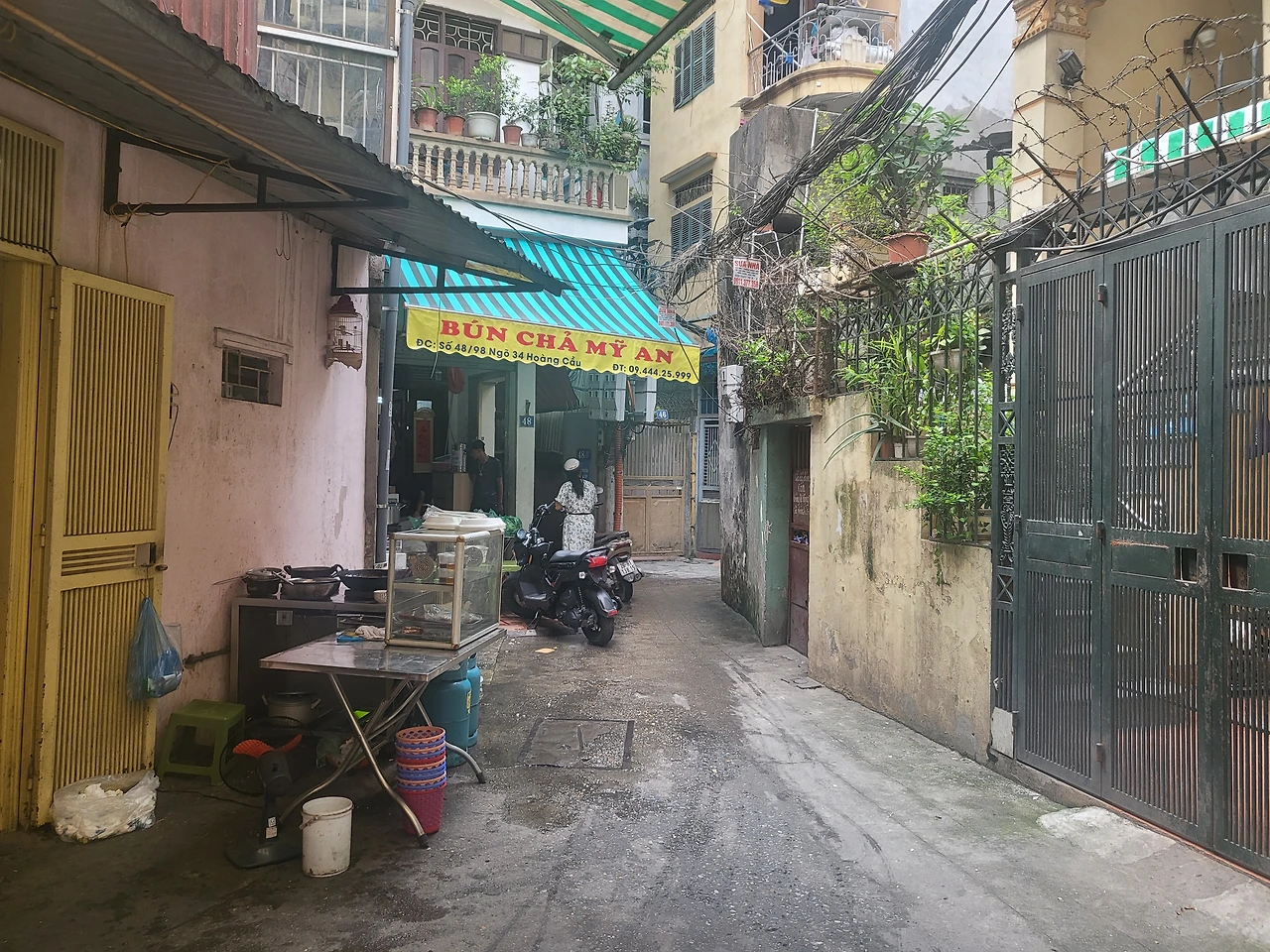 베트남 친구와 함께 하는 로컬 식당 탐사! 평소 알던 모습과는 다른 찐 하노이를 만날 수 있어 즐겁다. 골목길 구석구석 가정집을 개조한 작은 분짜 식당을 찾아갔다. 점심시간이 12시지만 우리가 간 시각은 1시 반! 왜 이리 늦게 왔냐고 타박하는 주인아주머니! 하지만 말과는 달리 아주 빠르게 식초, 맘 느억, 다진 마늘과 고추 등을 테이블에 내놓는다. 얼굴이 비칠 정도로 반짝거리는 테이블, 깔끔하게 정돈된 의자와 젓가락에 감동하며 사진을 찍는 민언냐! T와 베트남어로 대화를 하지만 억양이 어설픈 게 어느 나라 사람인지 궁금했나 보다. 아주머니는 슬쩍 채소를 올리며 주위를 맴돈다. 그리곤 어느 나라 사람이냐고 물어온다. 이때 T는 한번 맞춰보라고 장난스럽게 받아쳤다. 3초간 나를 곰곰이 쳐다본다. 그 시선이 너무 진지해 덩달아 긴장이 되었다. “라오스 사람.”이라고 했다. 음.. 이건 생애 처음 듣는 말이다. 한국인이라고 한 번에 맞추는 경우가 거의 없는 1인은 웁니다. 그 반응이 재밌어 ‘꺼이꺼이’ 웃음이 터졌다. 하지만 T의 반응이 싸늘하다. 강하고 단호한 어조로 ‘Không’(No)을 말하며 고개까지 절레절레 흔드는 게 아닌가. 빛의 속도로 부정하는 그녀의 반응이 더 당황스러웠다. 갈 곳 잃은 시선은 잘 닦인 식탁을 향했고 아주머니와 친구사이의 정적에 애꿎은 젓가락만 만지작거렸다. 그렇게 국적 맞추기는 다시 시작되었다.