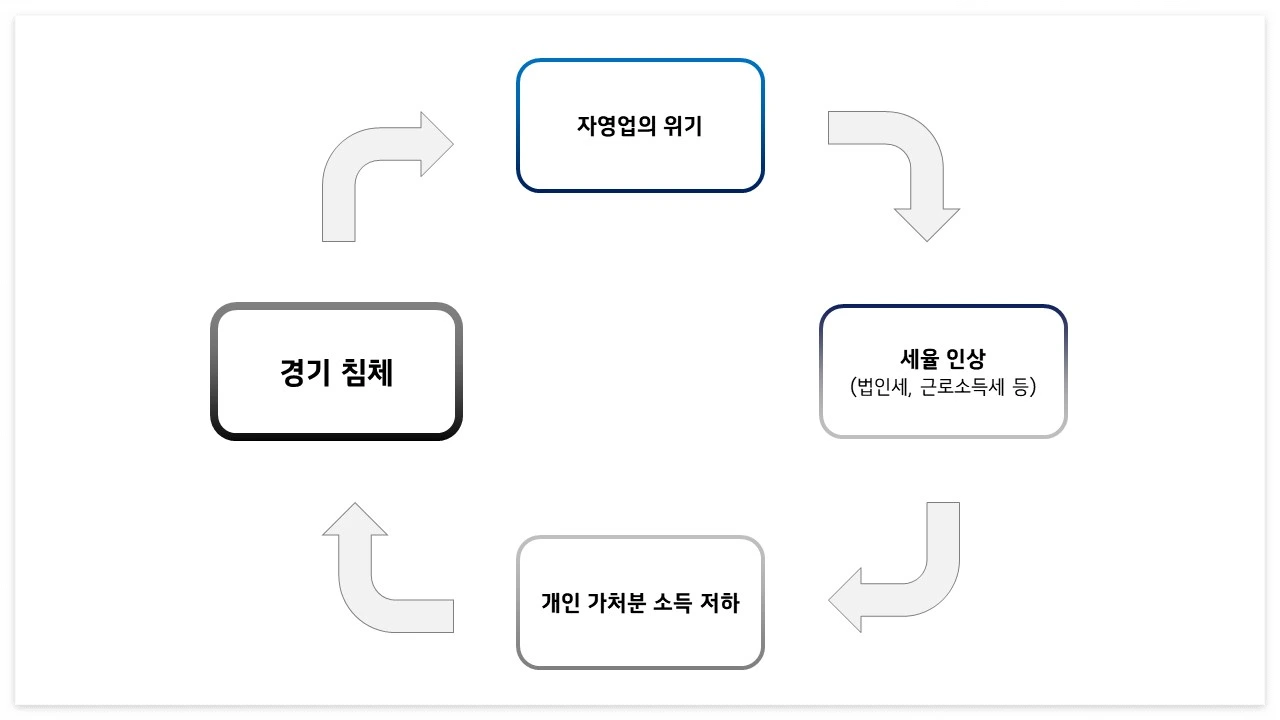 이를 막기 위한 지원책으로 세금이 필요하며, 이는 법인세와 근로소득세 증가로 전가된다.