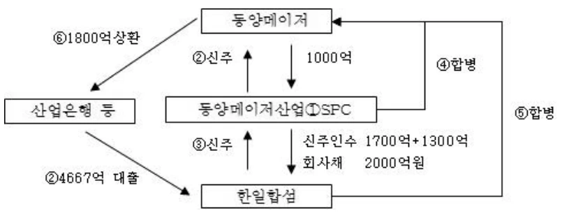 대상회사의 자산을 이용하는 LBO의 편리성을 포기할 수는 없었기에 국내에서는 신한 판결 이후 대체적인 LBO 방식을 찾기 위한 움직임이 시작되었다. 한일합섬 LBO의 경우 인수회사와 대상회사가 합병하는 방식으로 기존의 거래 방식을 대체하였다. 피고인들은 2007년 동양메이저의 자회사 SPC 명의로 산업은행 등으로부터 대출을 받고 동양메이저가 보유한 주식 및 동양 그룹 계열사들이 추후 인수할 한일합섬 주식에 대한 근질권설정계약을 체결하였다. 차입금을 재원으로 SPC와 동양그룹 계열사들은 한일합섬의 지분 91.5%를 인수한 후 동양메이저가 SPC와 한일합섬을 순차적으로 합병하였다. 이후 2008년 동양메이저는 한일합섬과 동양메이저 자체의 현금으로 인수대금 차입금 전액을 변제하였다.