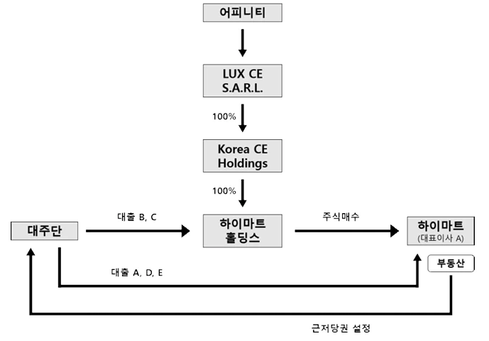 하이마트 사건의 사실관계와 판결 요지를 다시 되짚어보면 다음과 같다. 하이마트의 대표이사인 피고인은 사모펀드 AEP(Affinity Equity Partners)에 하이마트 발행주식 100%를 매각하기로 약정하였다. 이에 AEP는 하이마트의 주식 100%를 보유할 특수목적법인 하이마트홀딩스를 설립하였다. 하이마트홀딩스는 인수자금을 조달할 목적으로 2005년 국내외 금융기관과 총 4720억 원 규모의 대출계약을 체결하였다. 이후 하이마트는 대출계약의 당사자로 가입하여 하이마트가 소유한 토지 및 건물에 대해 대주단에게 채권최고액 6136억 원의 근저당권을 설정하였다. 하이마트홀딩스는 대출계약에 의해 실행된 대출금으로 하이마트 주식을 매수하였고, 이후 하이마트를 존속회사로 홀딩스를 소멸회사로 하는 흡수합병이 진행되었다. 피고인은 하이마트로 하여금 보유 부동산에 근저당권을 설정해 재산상의 손해를 가하였다는 이유로 기소되었다.