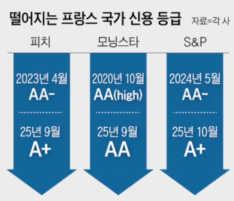 출처: 김승현, “국가 신용등급 강등 ‘3연타’ 맞은 프랑스”, 조선일보, 2025-10-20.