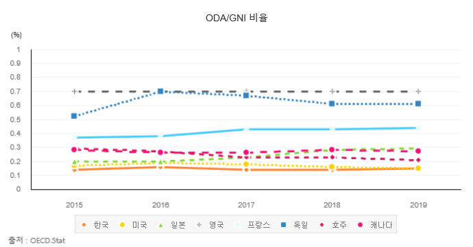 [도표 1] OECD Stat, “ODA/GNI 비율”